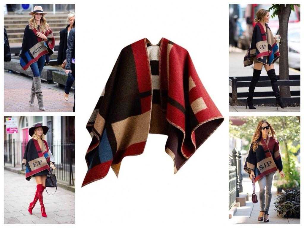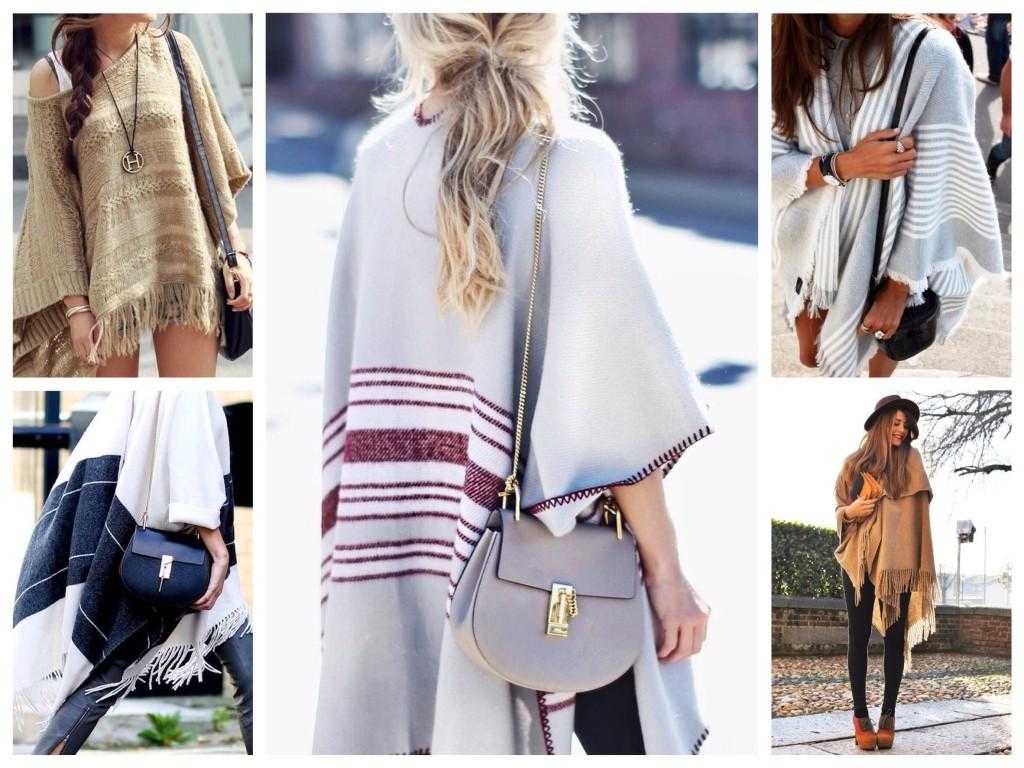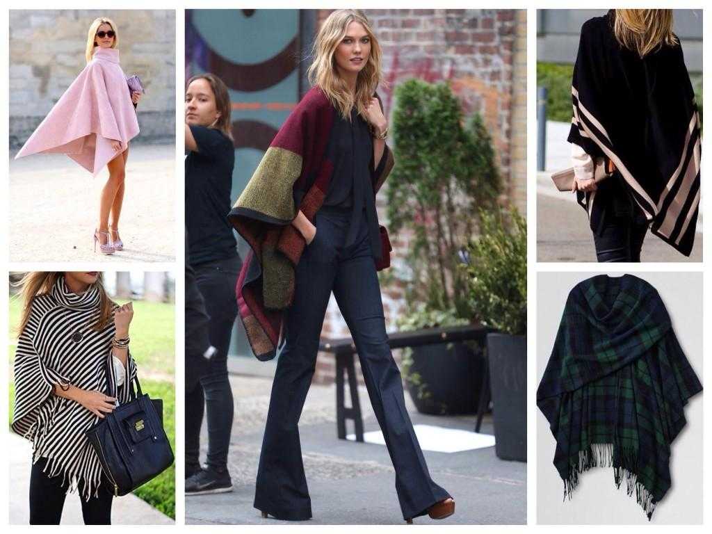 Сумочка должна быть небольшой и аккуратной. Что касается кейпов, то стильно выглядят модели, которые носят либо в руке, либо на локте. Они подходят как для повседневных, так и для деловых комплектов. На фото с пончо и накидками варианты сумочки на плече.