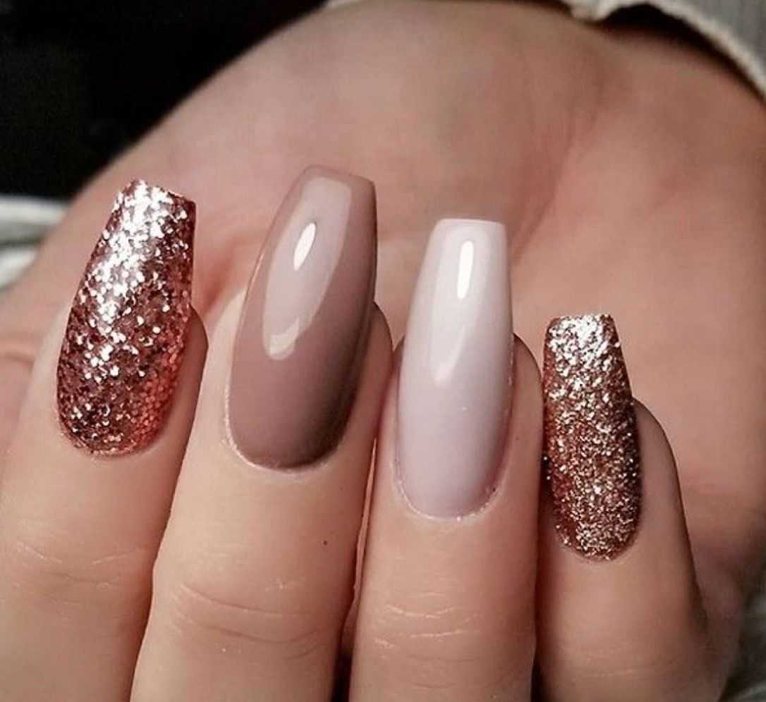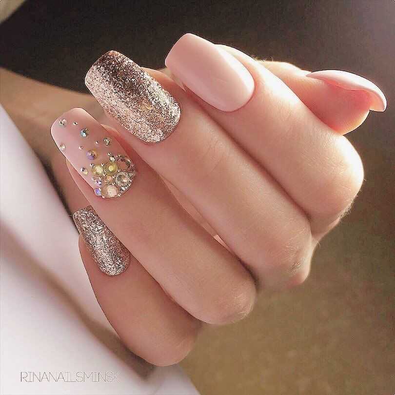 Трендовым сочетанием гель-лака и блесток будут оттенки, приближенные к натуральным, из пастельной палитры, в частности прозрачные, бежевые, розовые и белые тона.
