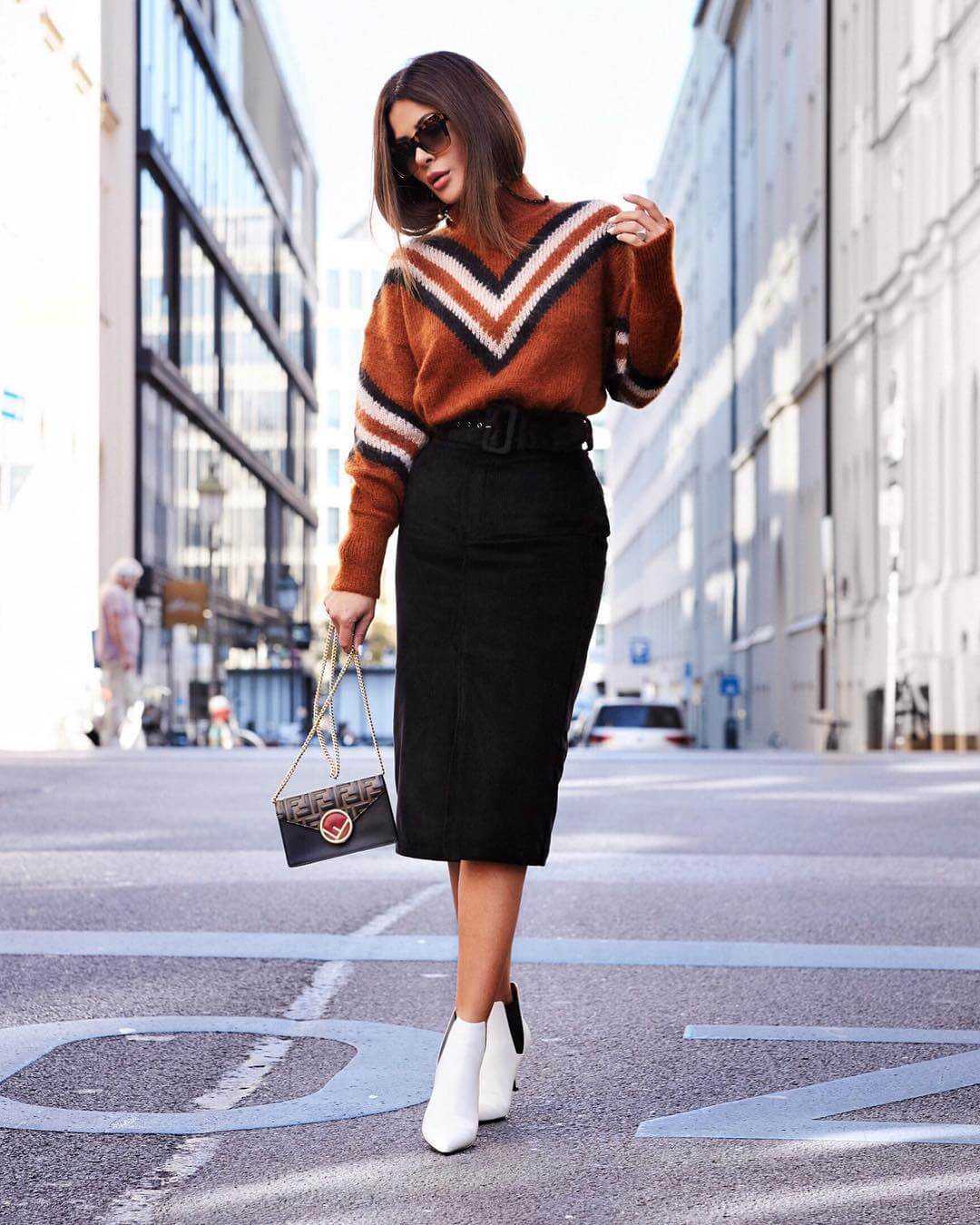 Есть женщины, которые пытаются обмануть возраст и выбирают молодёжный стиль в одежде, продолжают носить короткие юбки. Этого делать не нужно. Оптимальная длина юбки – на 5-10 см ниже колена. Миди тоже идёт не всем, но если в этом образе женщина смотрится органично, не нужно отказываться от такой длины.