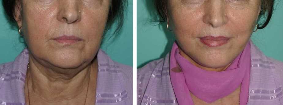 Устраняет двойной подбородок, подтягивает подчелюстную линию.
