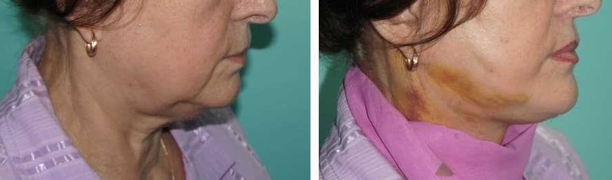 - вы направляете провисшие ткани шеи назад, а это основное условие, которое позволяет подтянуть дряблые ткани шеи.