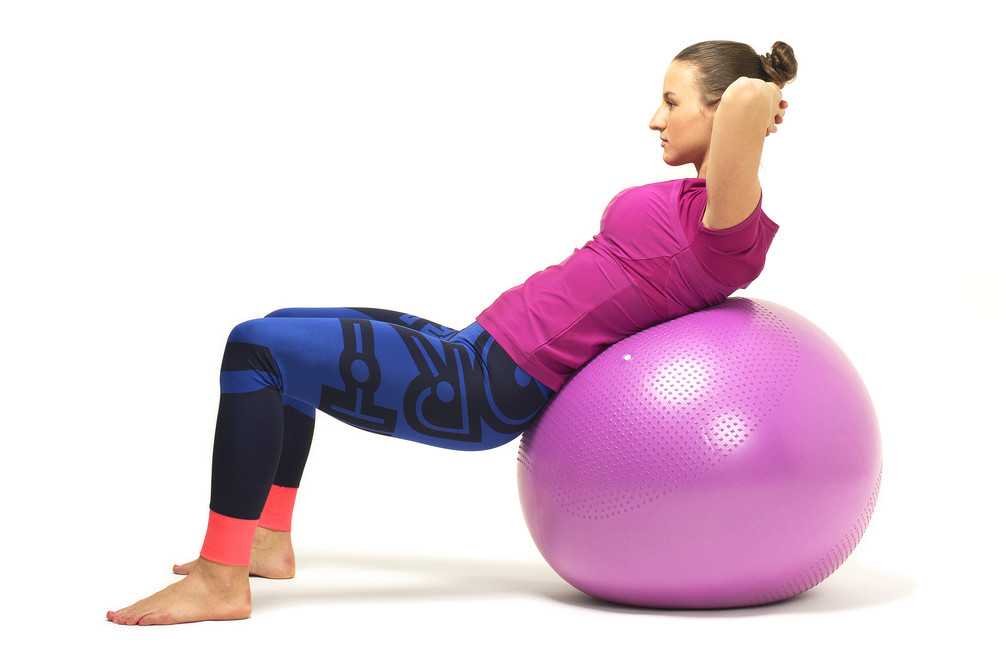 - Теперь закиньте стопы на сферу. Руки при этом заведите за голову.
