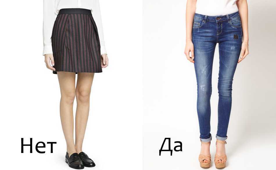 Идеальным решением проблемы для О-подобных ног, будут джинсы или брюки прямого кроя, или же расклешенные. Они должны быть правильной длинны, без складок у основания ноги, и из плотной ткани. Летом, исправить положение, помогут капри.