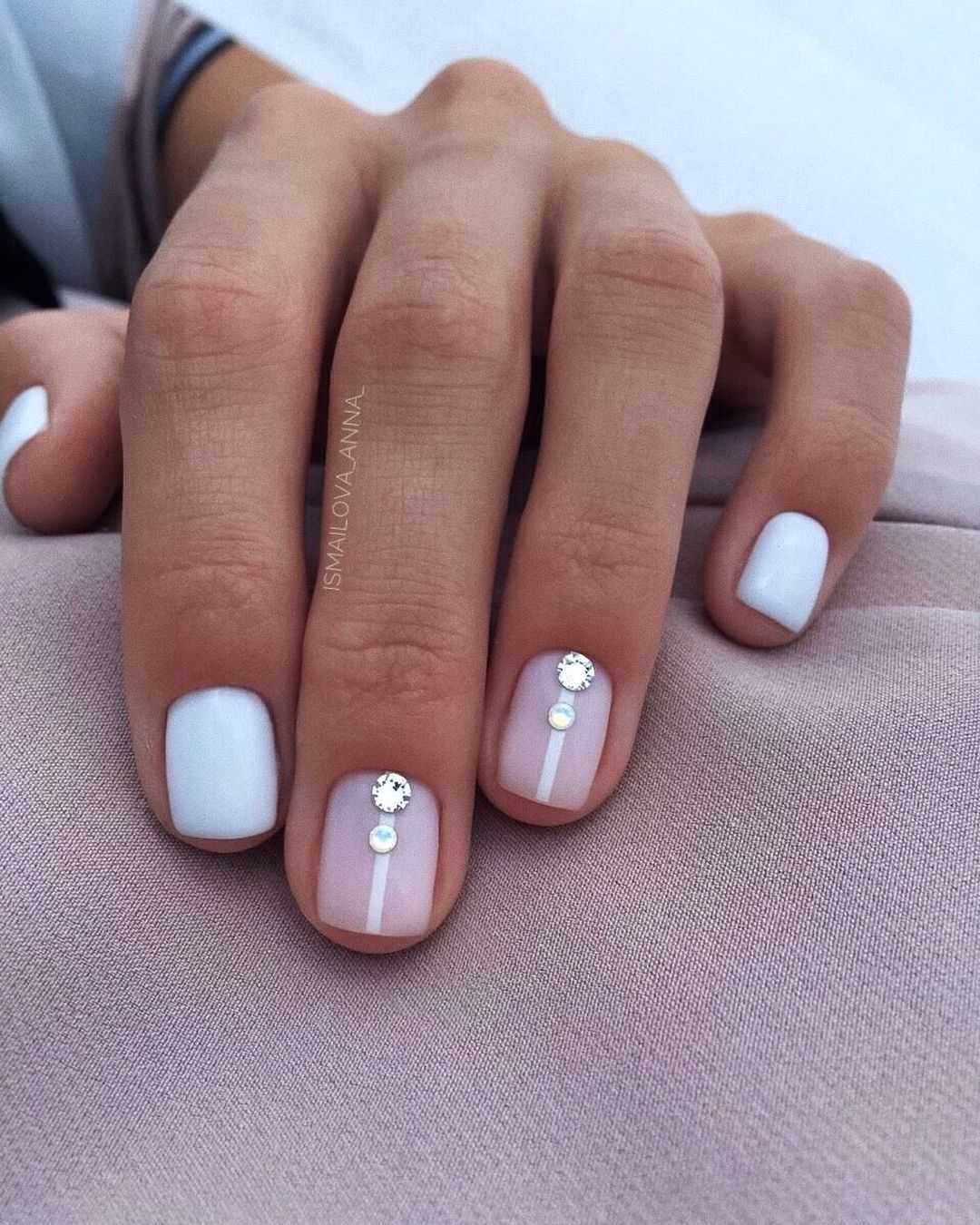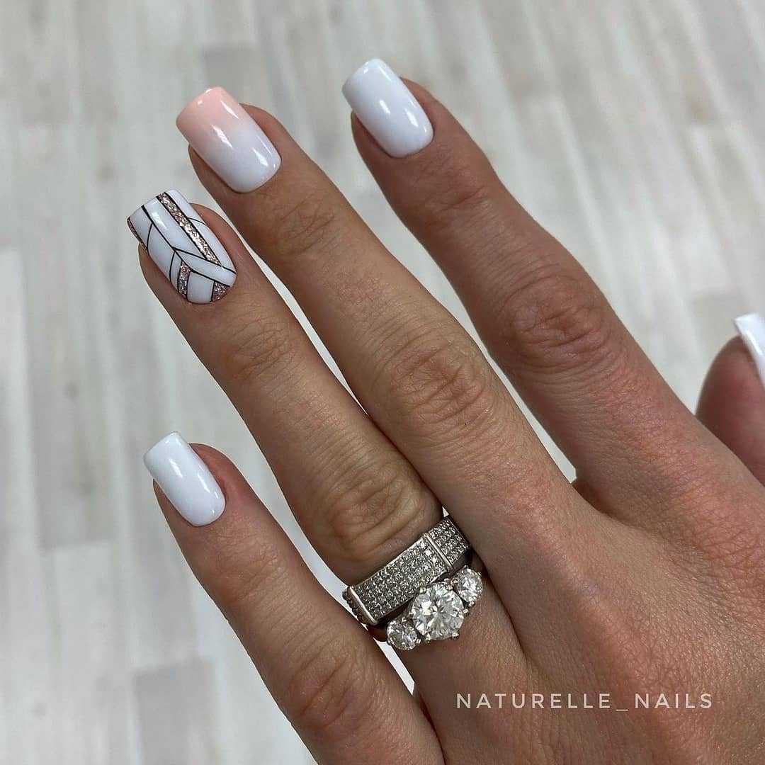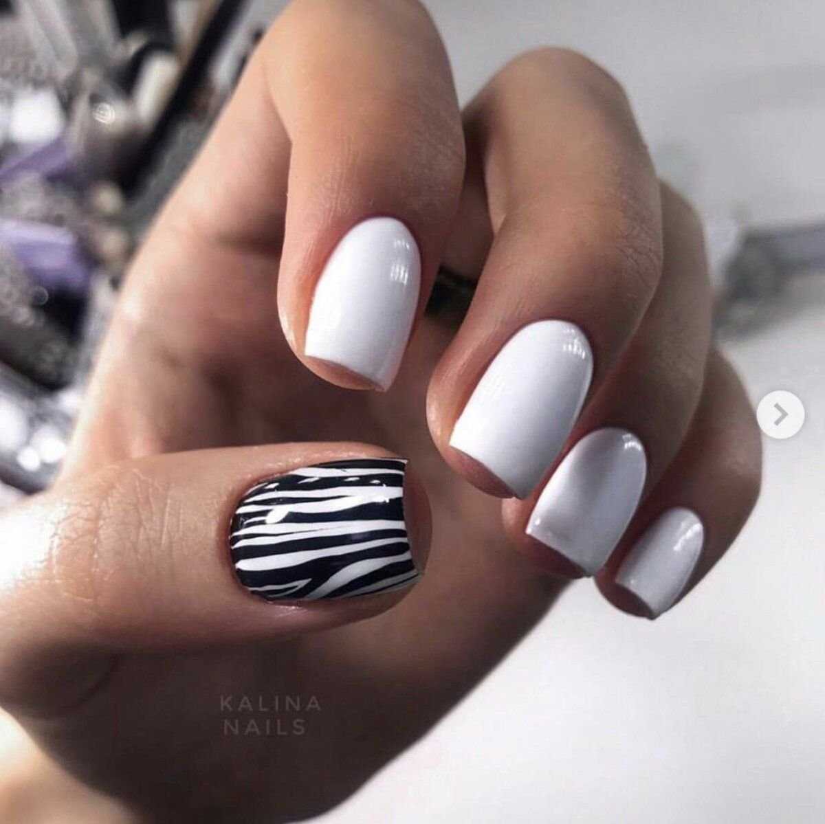 Нестареющая классика базы под нейл-арт, а так же самостоятельный цвет для покрытия. На сегодняшний день популярная концепция – чёрный с белым. Также стоит выделить розово-белый и красно-белый, сочетание для торжеств и будней. Молочный как незаменимое приложение к любому образу, создаёт ощущение воздушности.