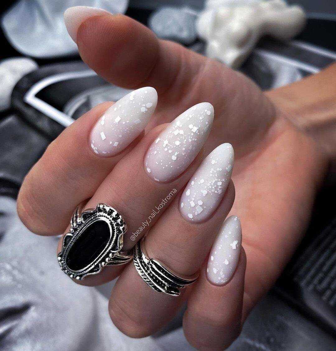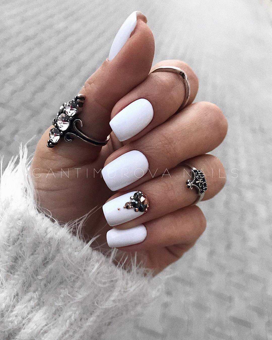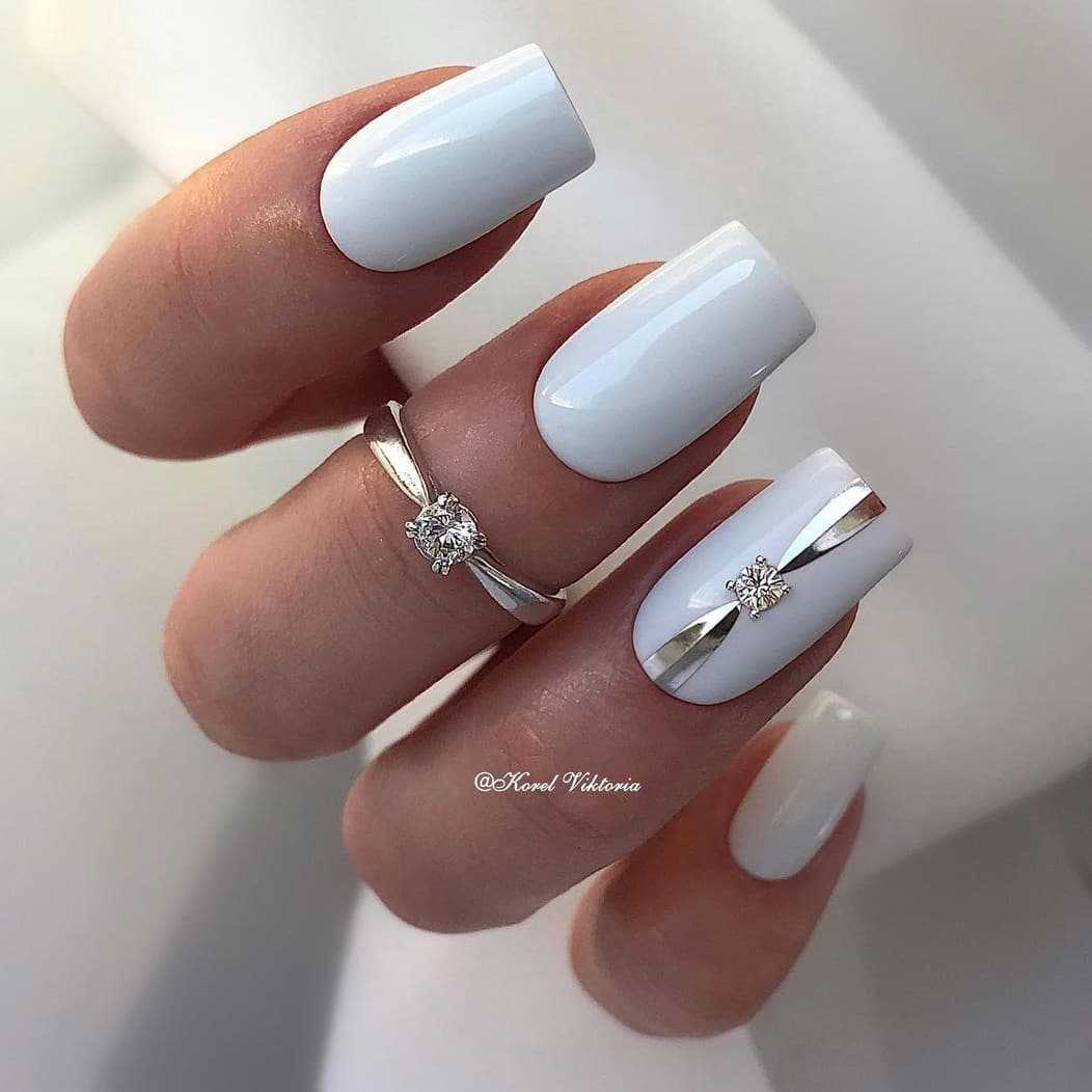 Нестареющая классика базы под нейл-арт, а так же самостоятельный цвет для покрытия. На сегодняшний день популярная концепция – чёрный с белым. Также стоит выделить розово-белый и красно-белый, сочетание для торжеств и будней. Молочный как незаменимое приложение к любому образу, создаёт ощущение воздушности.