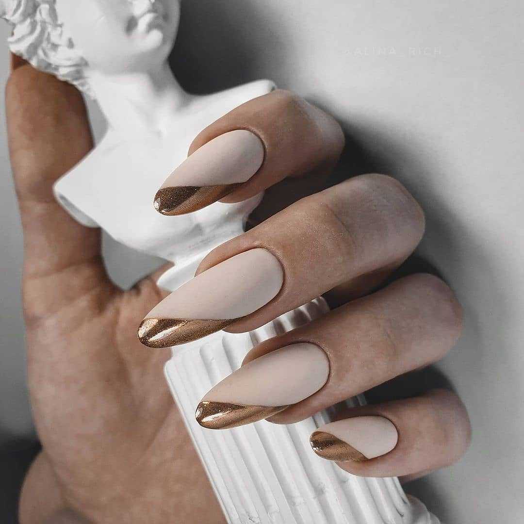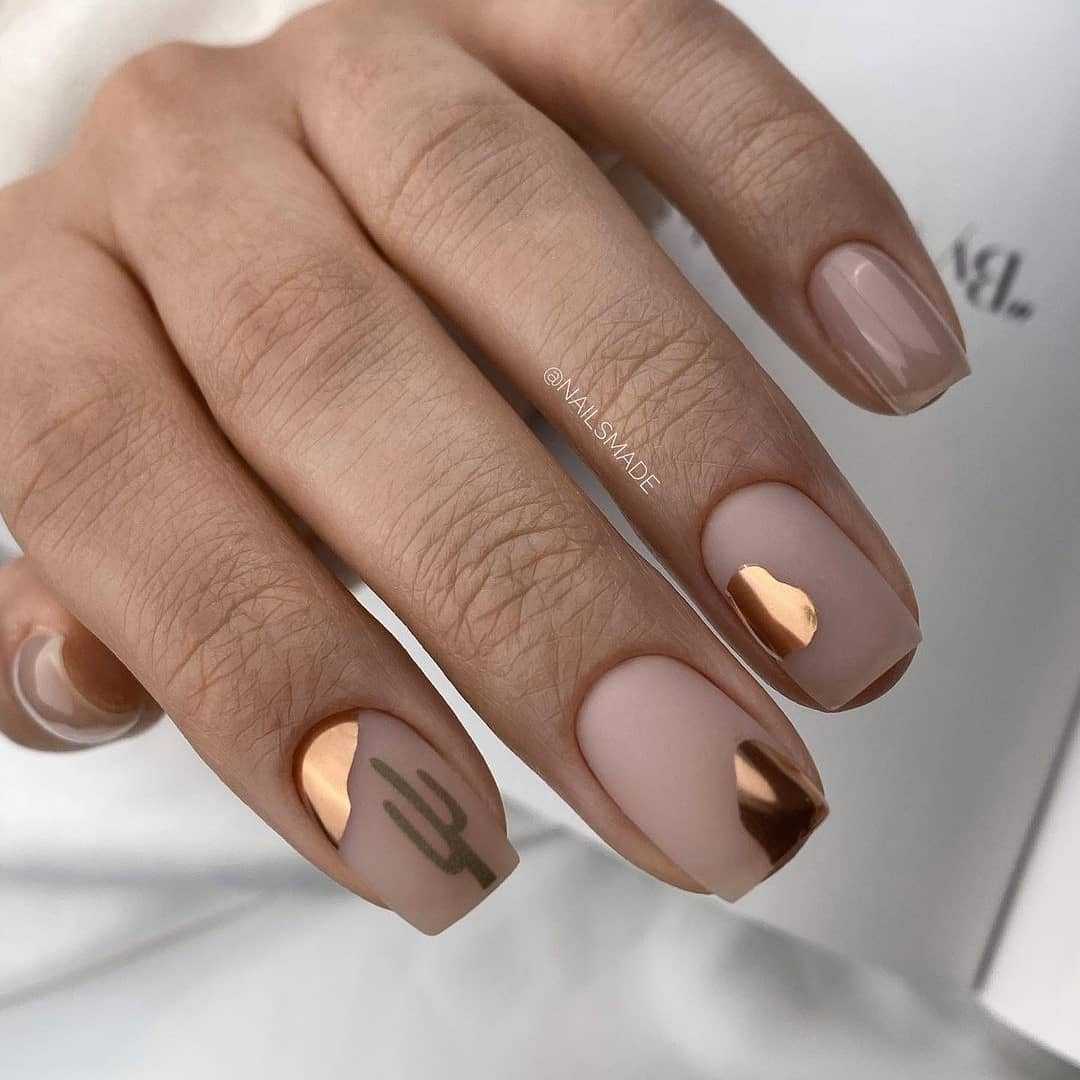В 2023 году вызывают большой интерес и входит в массовость актуальность «металлизированных» покрытий. Многие нейл-дизайнеры советуют применять эти лаки в создании осенне-зимнего нейл-дизайна и сочетать с матовыми покрытиями темных оттенков. Модные еще обернутые специальной фольгой ногтевые пластины золотистого или серебристого цвета, чудесно сочетаются с нарочито-простыми вечерними нарядами.