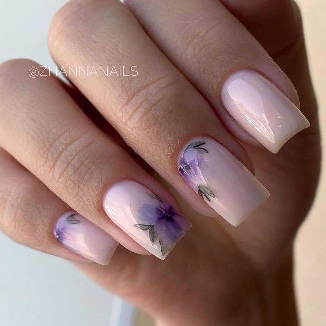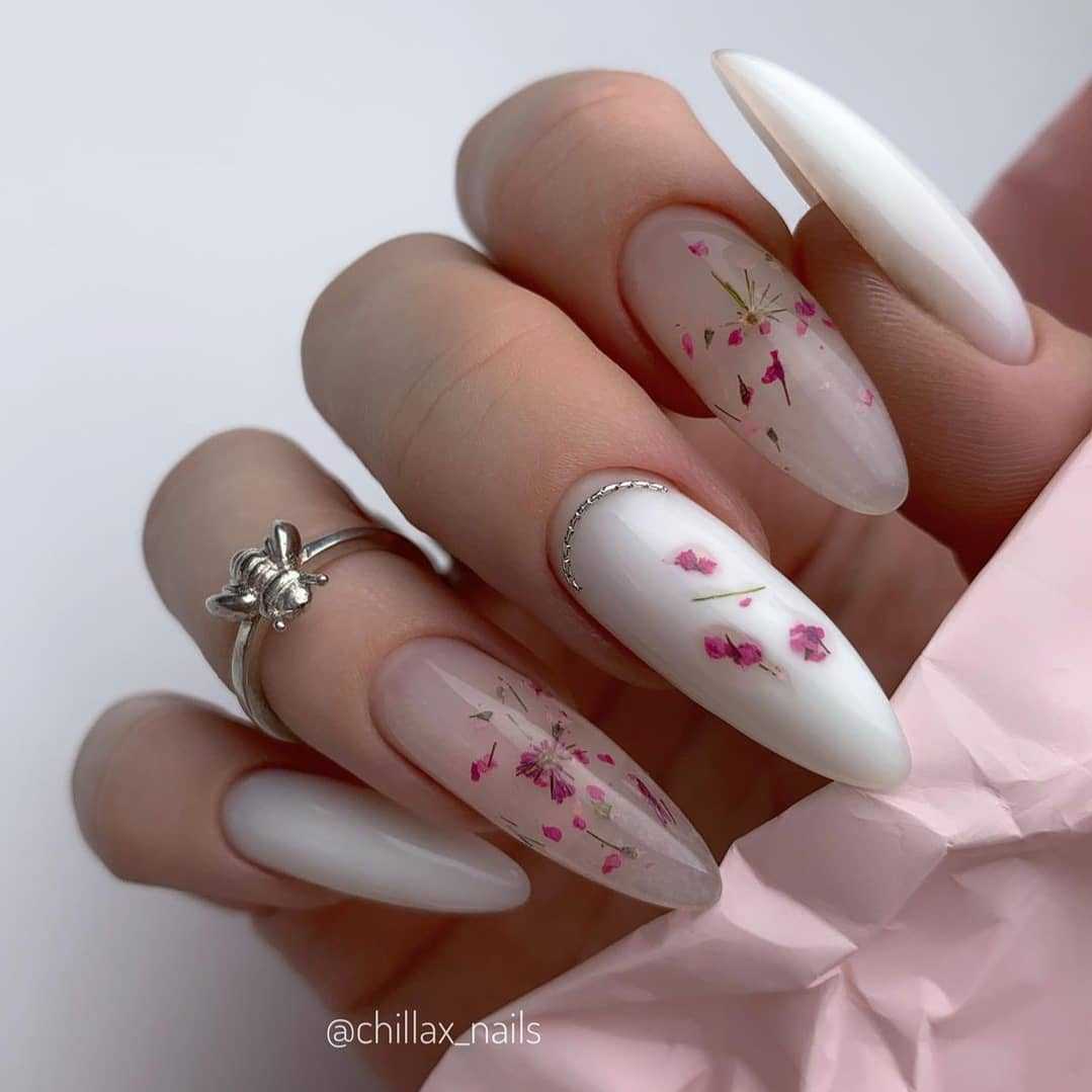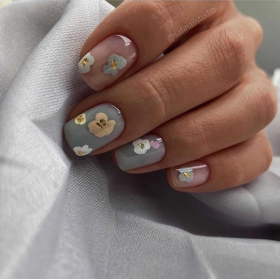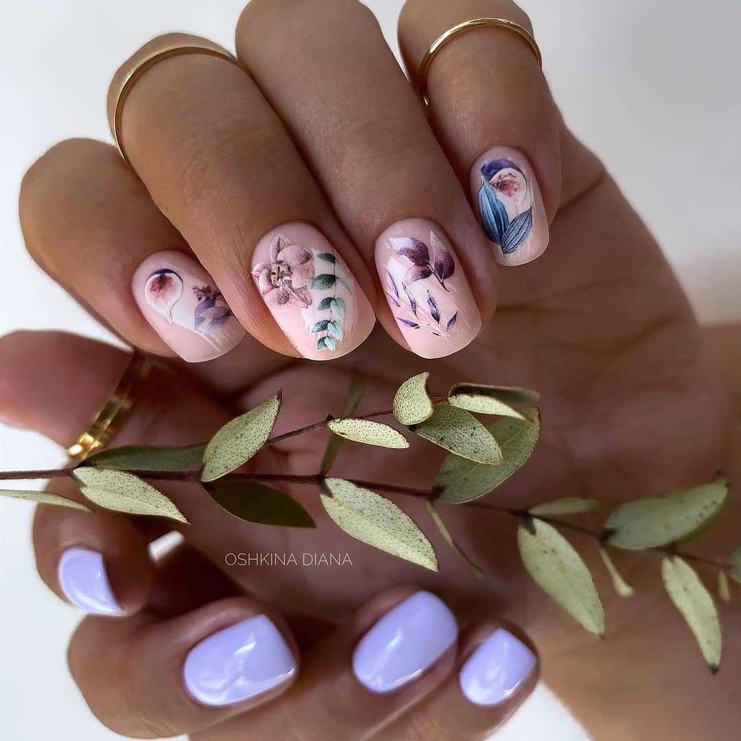 Летний маникюр 2024-2025 с цветочками, веточками, завитками — идеи и тренды