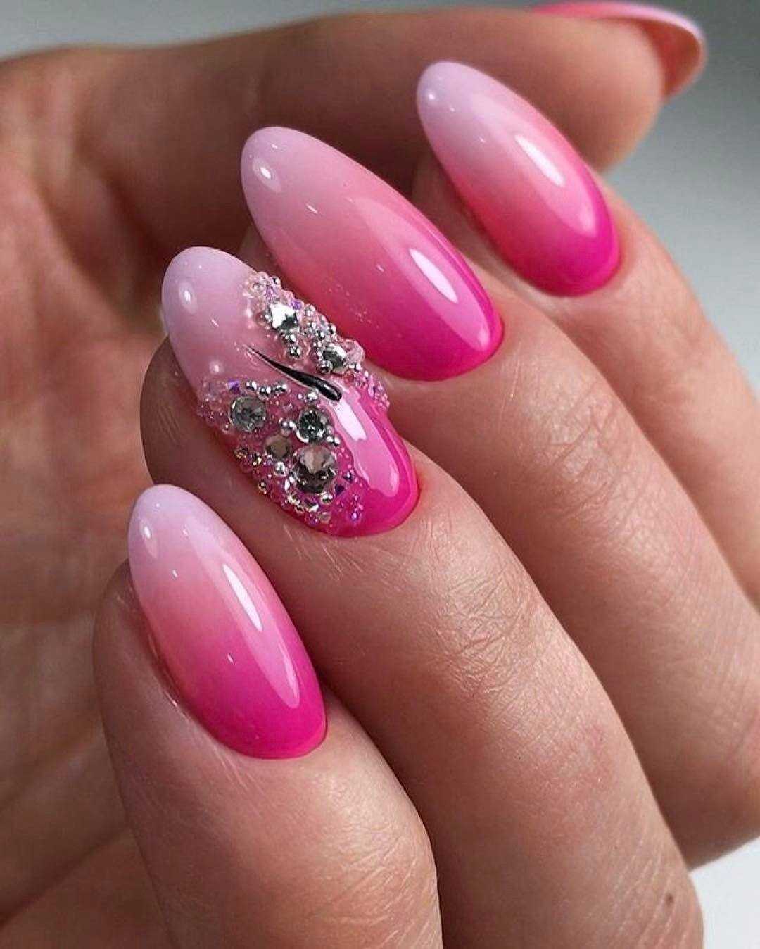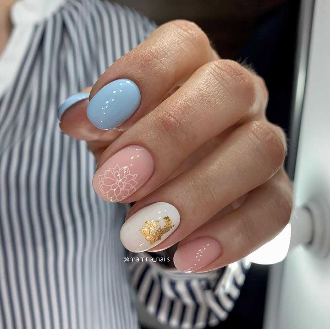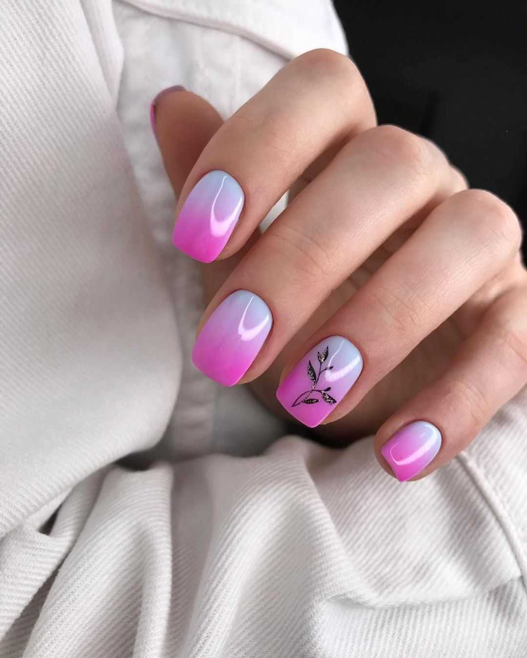 Эффект градиента — вечный тренд в мире нейл-арта. Он создается путем мягкого смешивания нескольких оттенков лака. Красивый и нежный вариант на лето — сочетание розового и голубого. Переход может быть как вертикальным, так и горизонтальным.