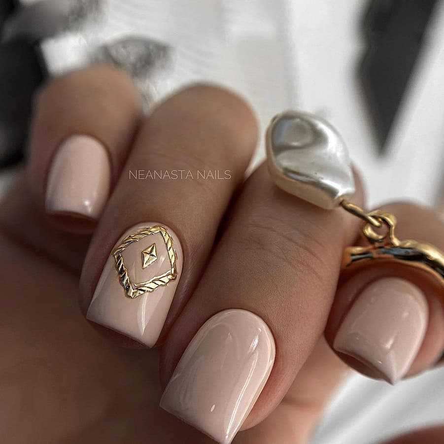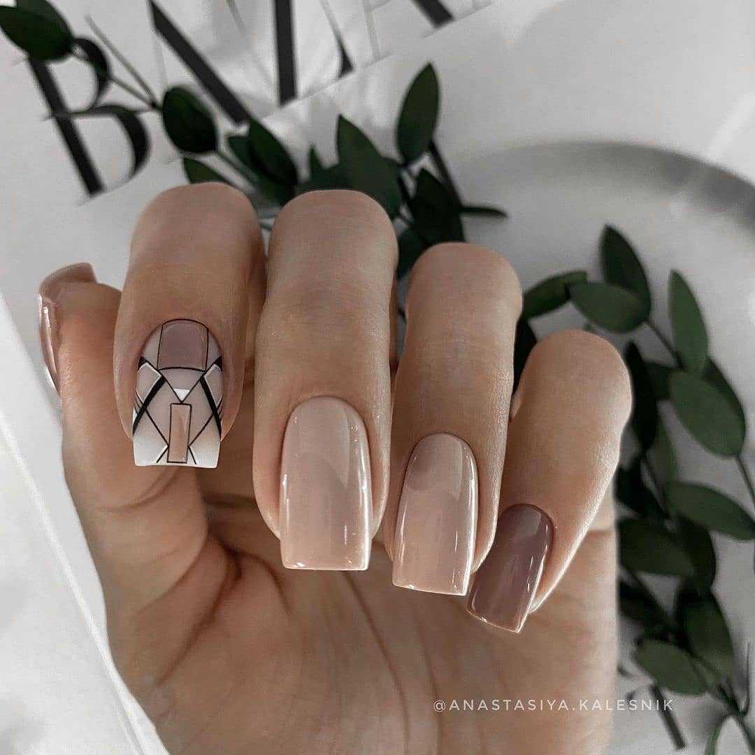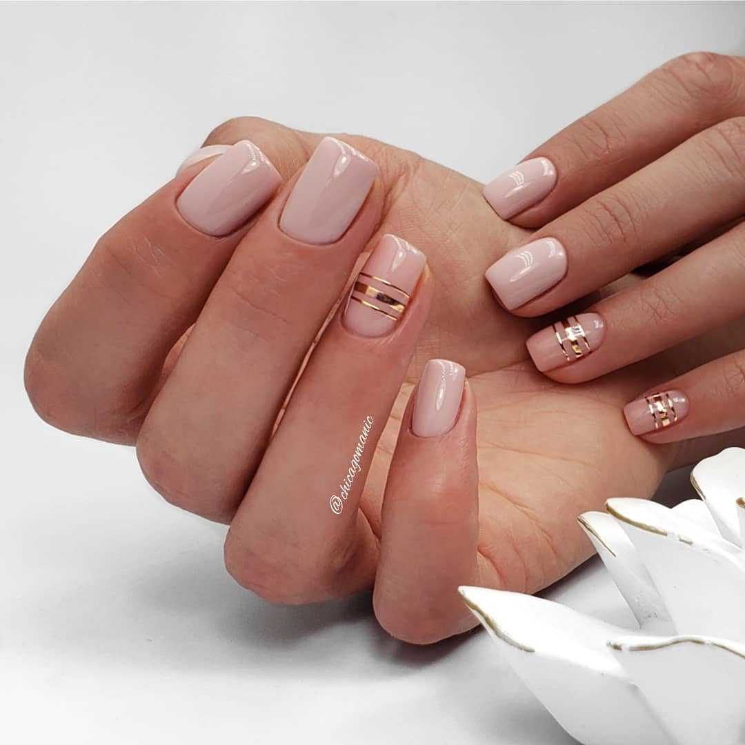 Однако, для маникюра на коротких ногтях именно строгая, четкая квадратная форма будет смотреться изыскано. На ней хорошо смотрятся геометрия, полоски, надписи. Изящно смотрятся такие ногти с добавлением блестков из золота или серебра.