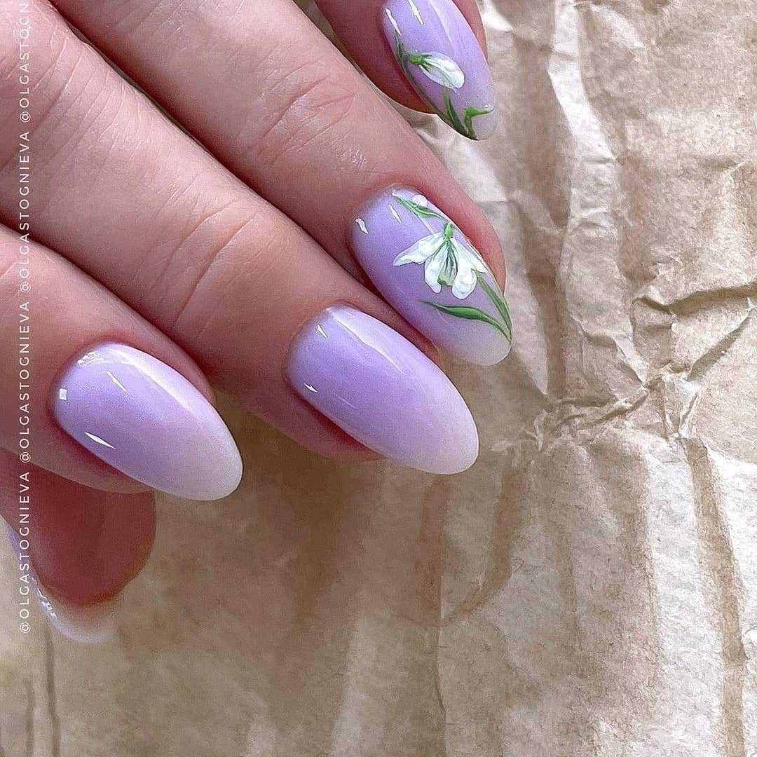 Фиолетовый лак прекрасно смотрится как на темной, так и на светлой коже. Этот оттенок никогда не надоедает. Он отлично подойдет как для повседневного ношения, так и для особого образа. Этот модный цвет находится на пике популярности летнего сезона. Его можно легко сочетать с любыми аксессуарами: сумочкой, обувью, очками. Он одинаково хорошо смотрится на любой форме ногтей.