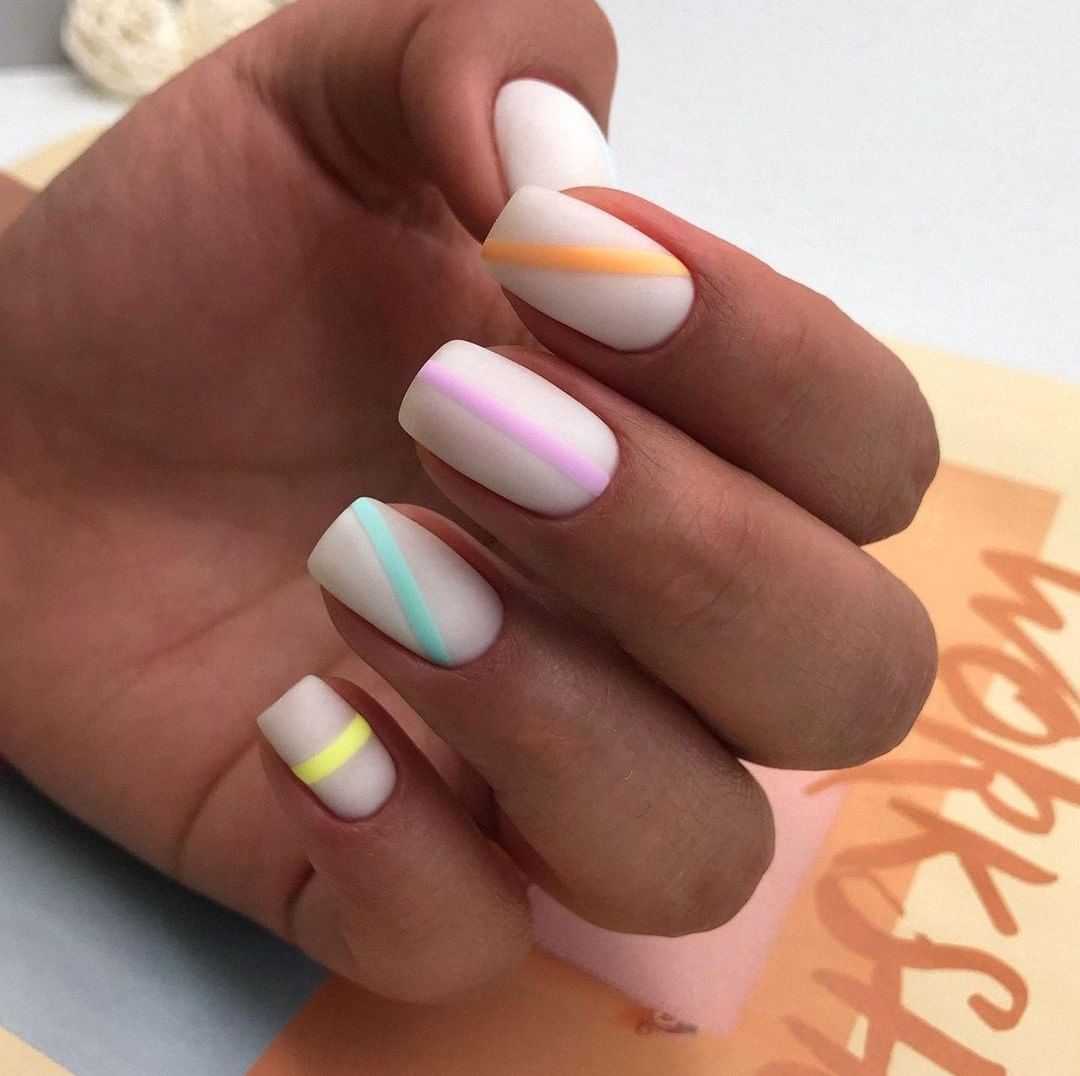 Зачем выбирать один цвет, если можно использовать несколько одновременно? Разноцветные ногти — отличная идея для тех, кто хочет сделать смелый и неповторимый маникюр. Не стесняйтесь проявлять творческий подход и воплощать в реальность этот смелый и модный дизайн. Оттенков на выбор так много, что можно растеряться! Более того, вы можете сочетать выбранные цвета с креативным декором. Это будет выглядеть очень молодёжно и стильно.