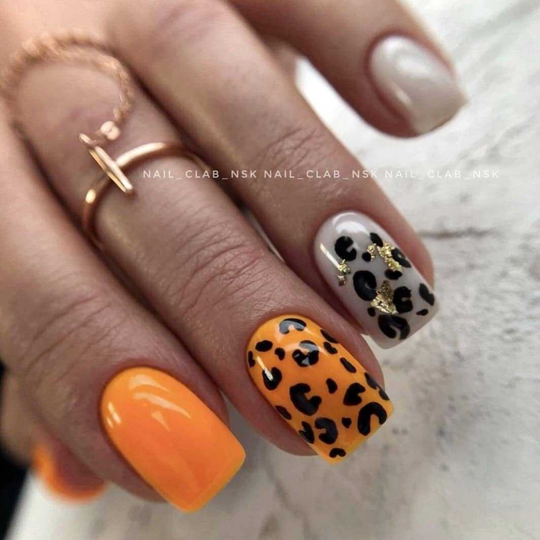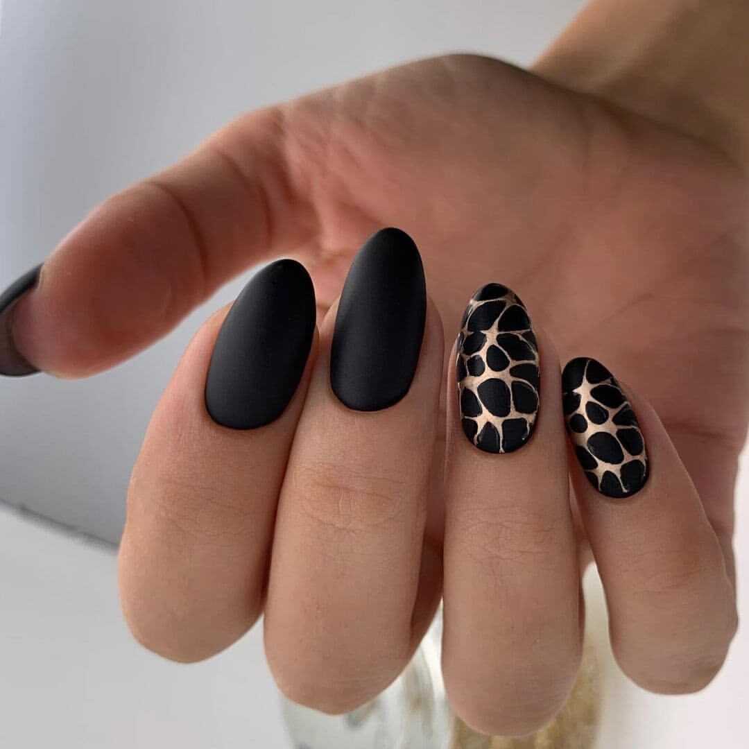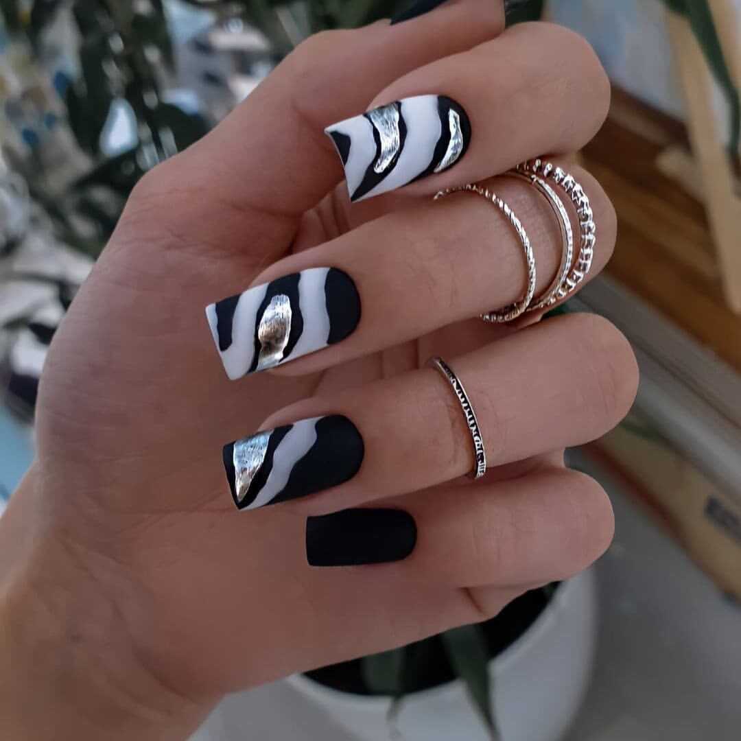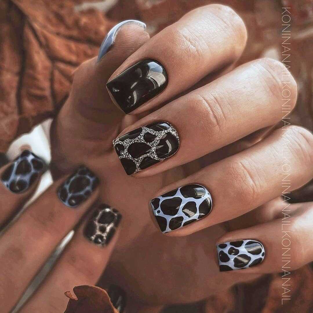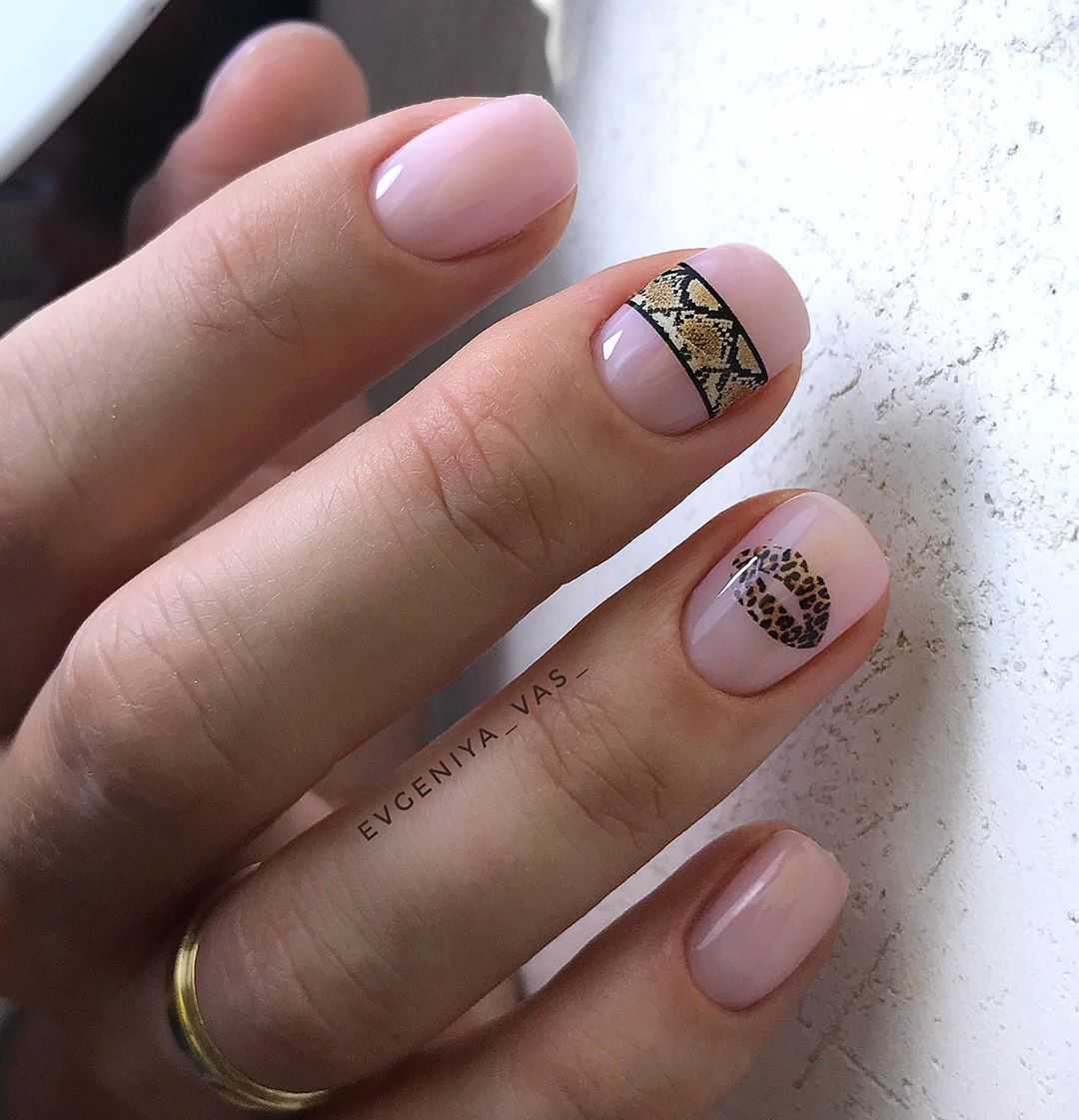 Имитация кожи животных на ногтях средней длины смотрится хорошо в любой сезон. Зебра, тигр, корова, черепаха — выбирайте любой. Это отличный вариант, что создать на ногтях необычную картинку.
