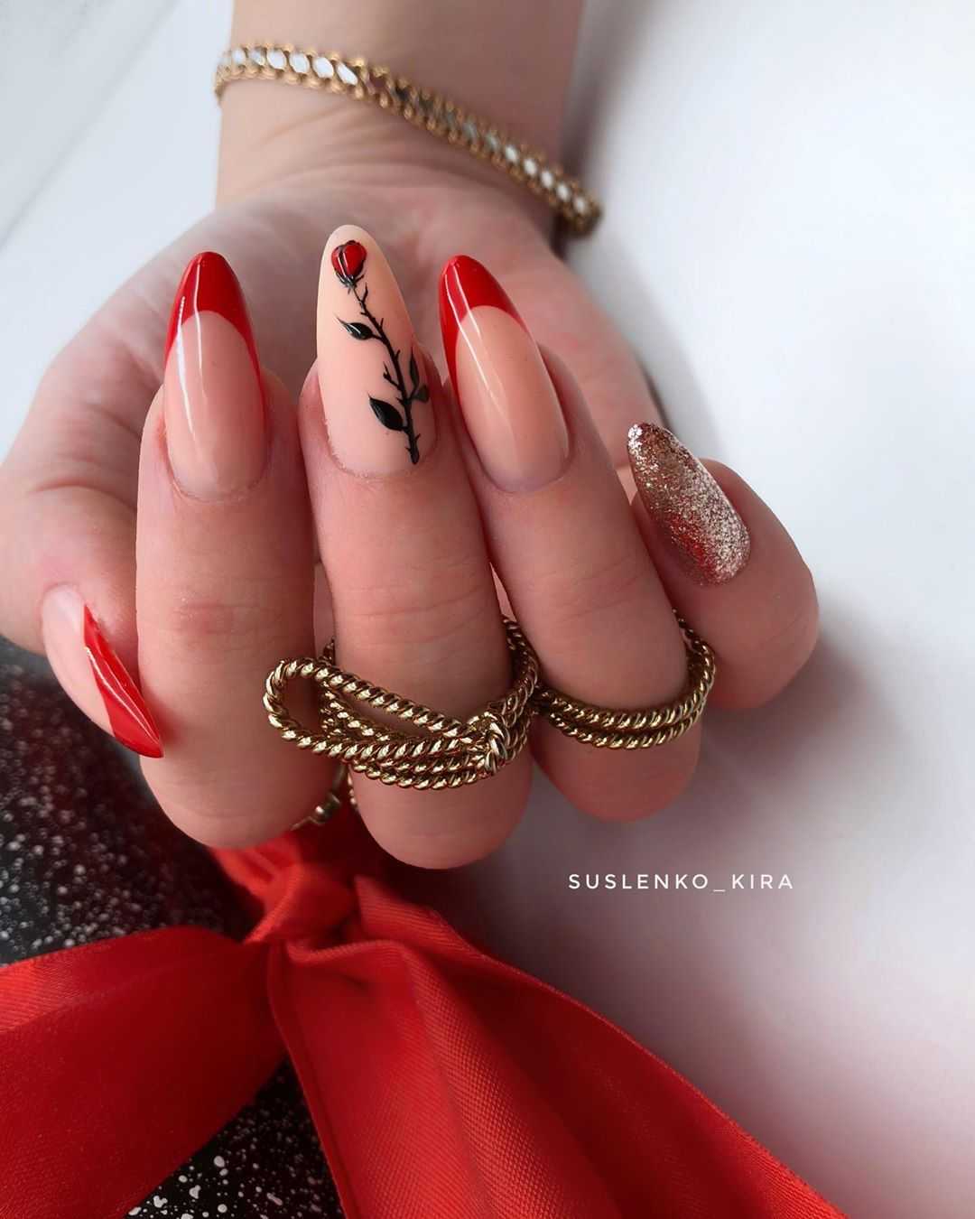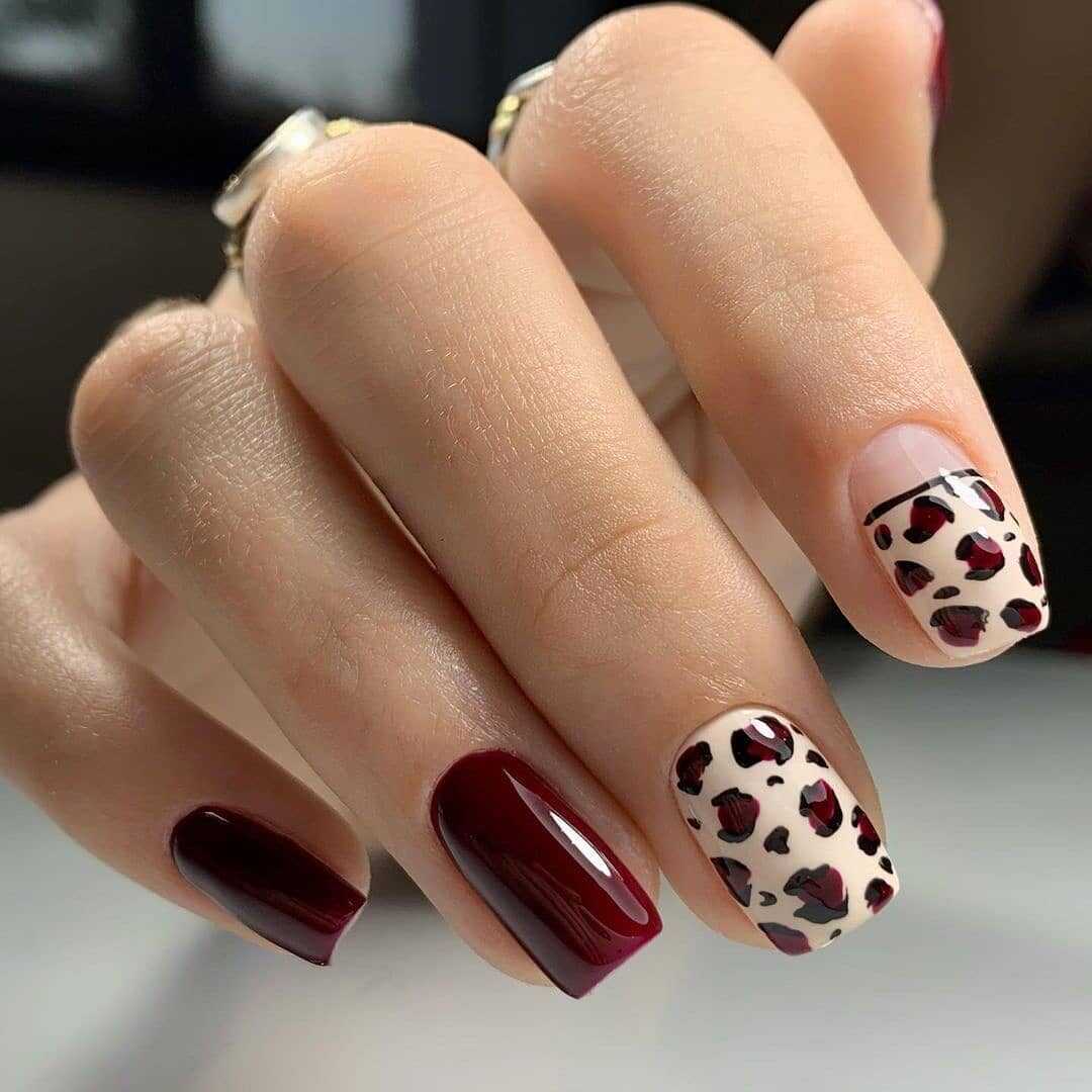 Популярен в 2023 году в виде минимализма. Бордовый, винный и вишневый актуален с длинными и короткими ногтями.