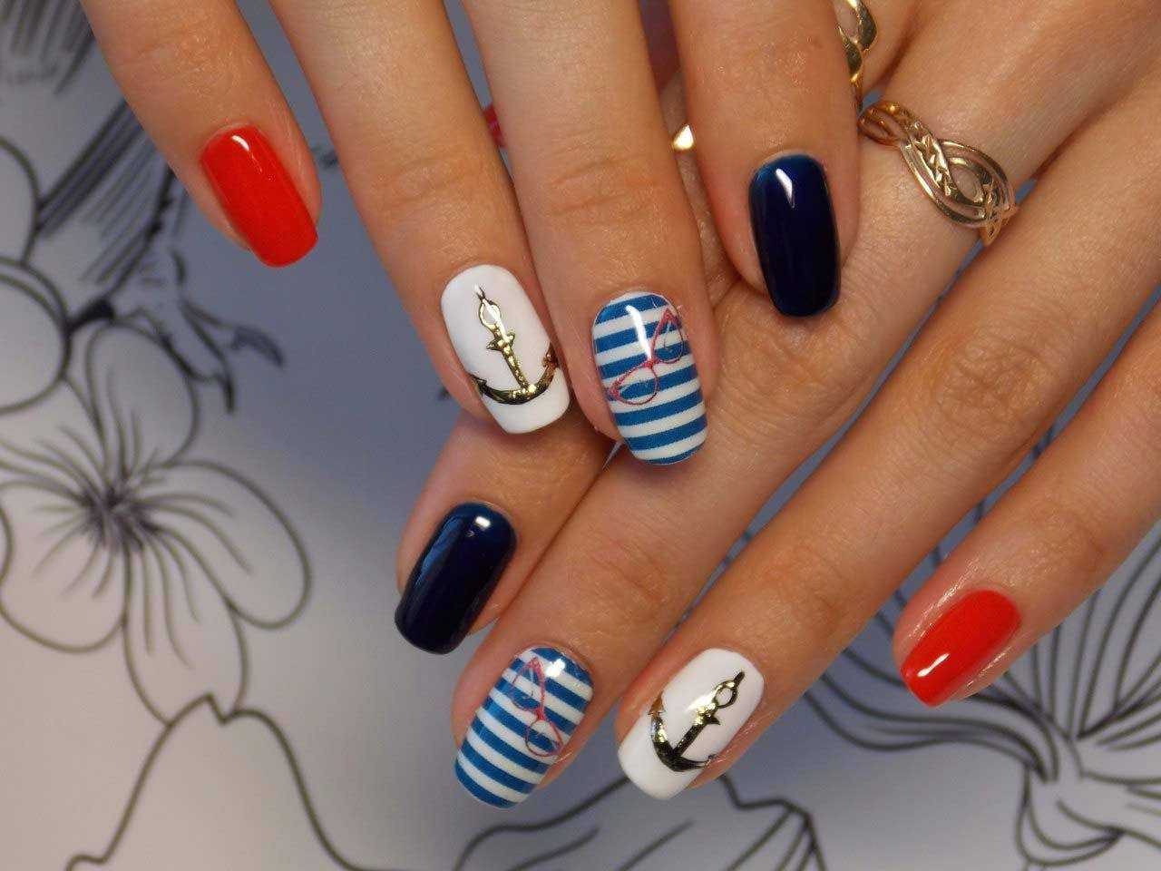 В летний сезон как никогда актуален тематический морской дизайн, который прекрасно дополняет маникюр и педикюр. Череду ракушек, морской берег, солнце на закате, якорь и многое другое можно изобразить от руки. В домашних условиях это будет проще сделать, используя раздвижную конструкцию. И конечно же, чтобы насыщенные оттенки лака не выгорали на солнце, поверх него лучше нанести топовое покрытие. Благодаря ему можно не переживать за привлекательный внешний вид ногтей.