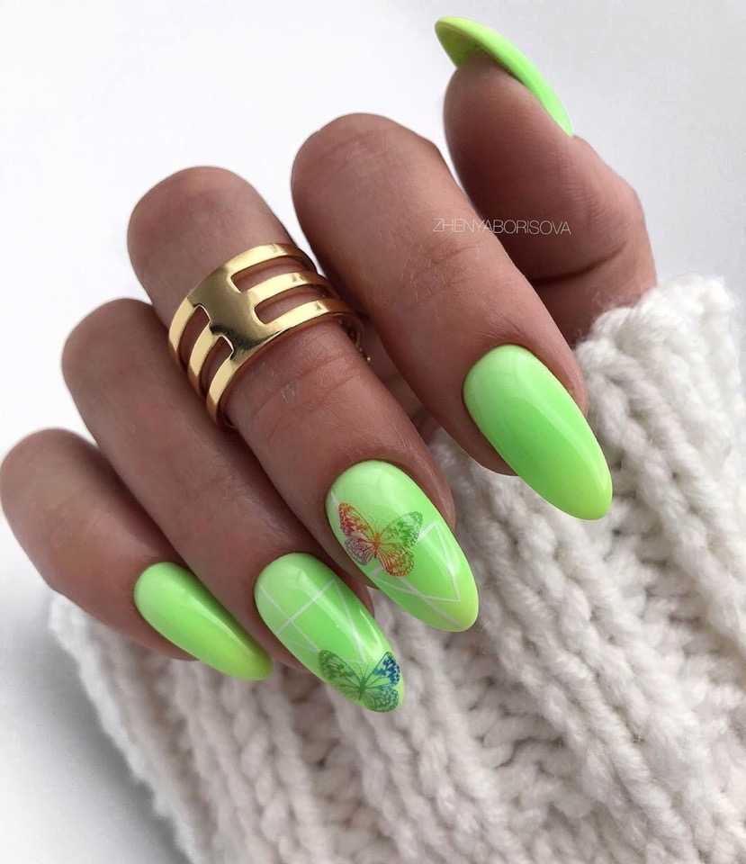 Эстетичный и элегантный оттенок. Зеленый излучает удивительную свежесть и свободу. Этот цвет хорошо сочетать с креативным декором. Зеленые ногти придают неожиданный и игривый оттенок любому образу, а также напоминают, что лето — идеальное время для неординарных и интересных лаков.
