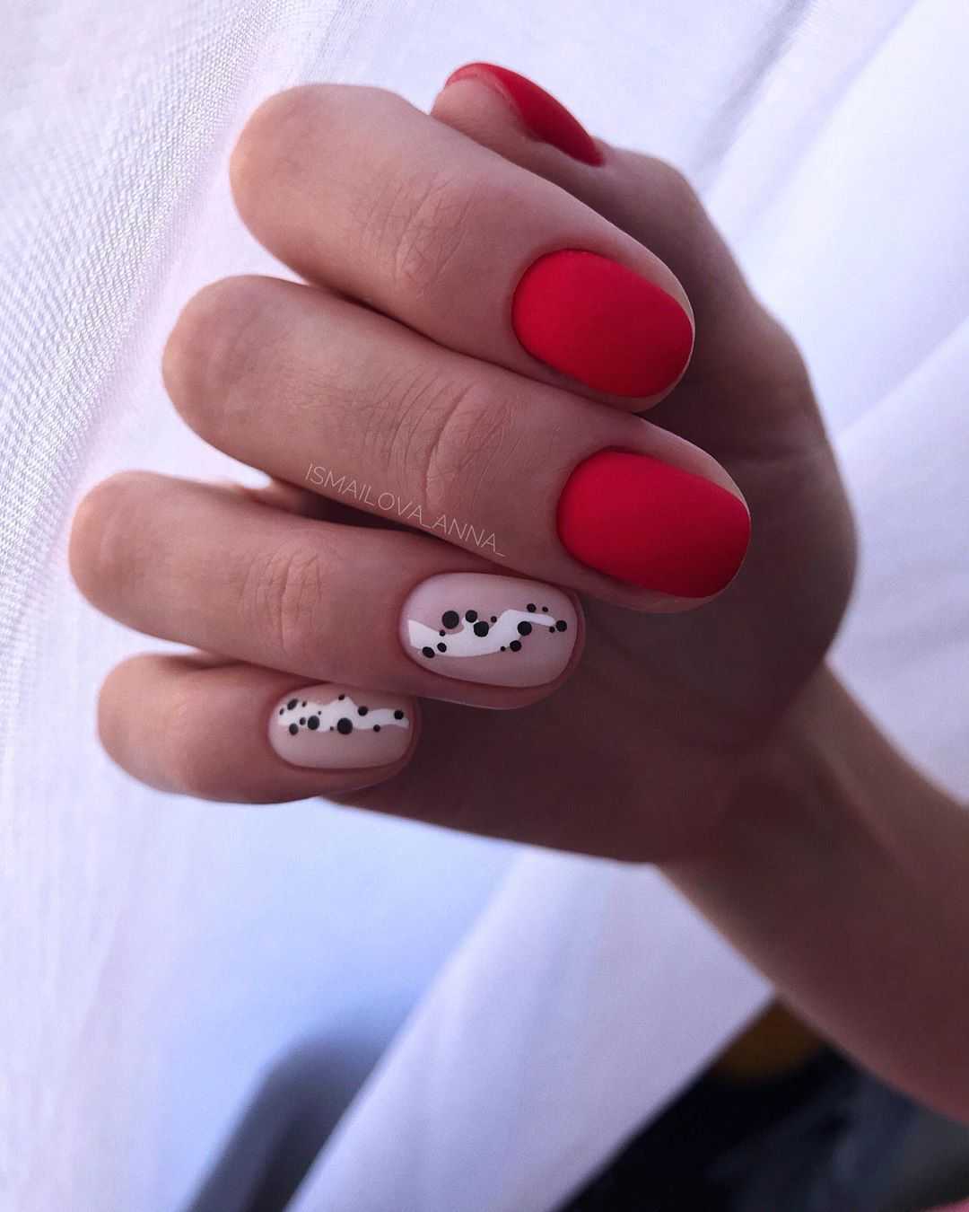 Матовый финиш — это стильный и современный способ добавить текстуру в однотонный маникюр. Матовый лак отлично подходит для создания монохромного дизайна и может быть использован как основа для дополнительных украшений, таких как стразы или блестки.