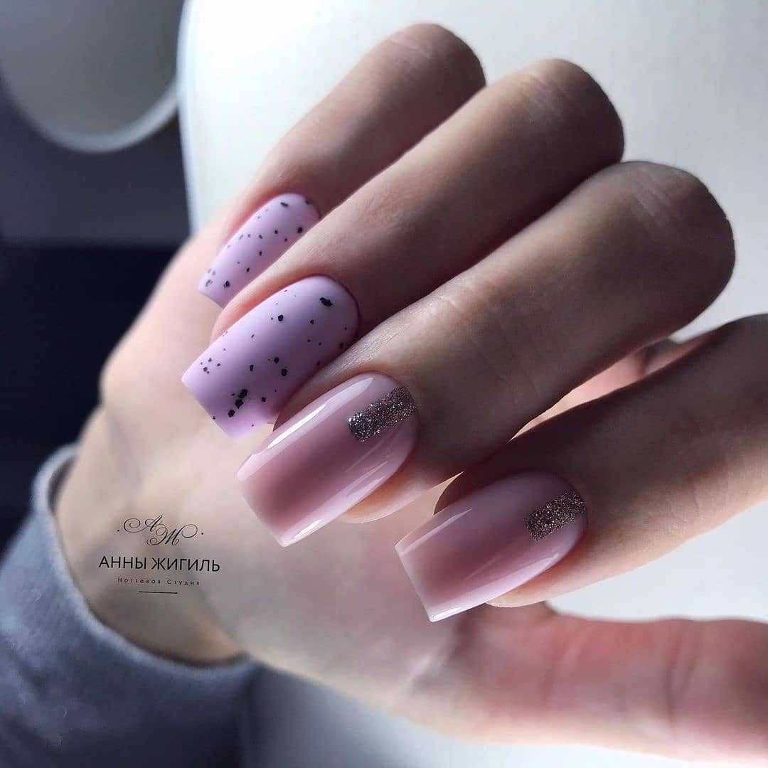 Розовый уместный в праздники и будни, вписывается в любимый имидж в одежде. Чёрный, белый и голубой тон создают красивый контраст. Серый оттенок приглушает розовый, делая ногти спокойными. Эффекты брызг, страз и мрамора выгодно подчеркнут образ.