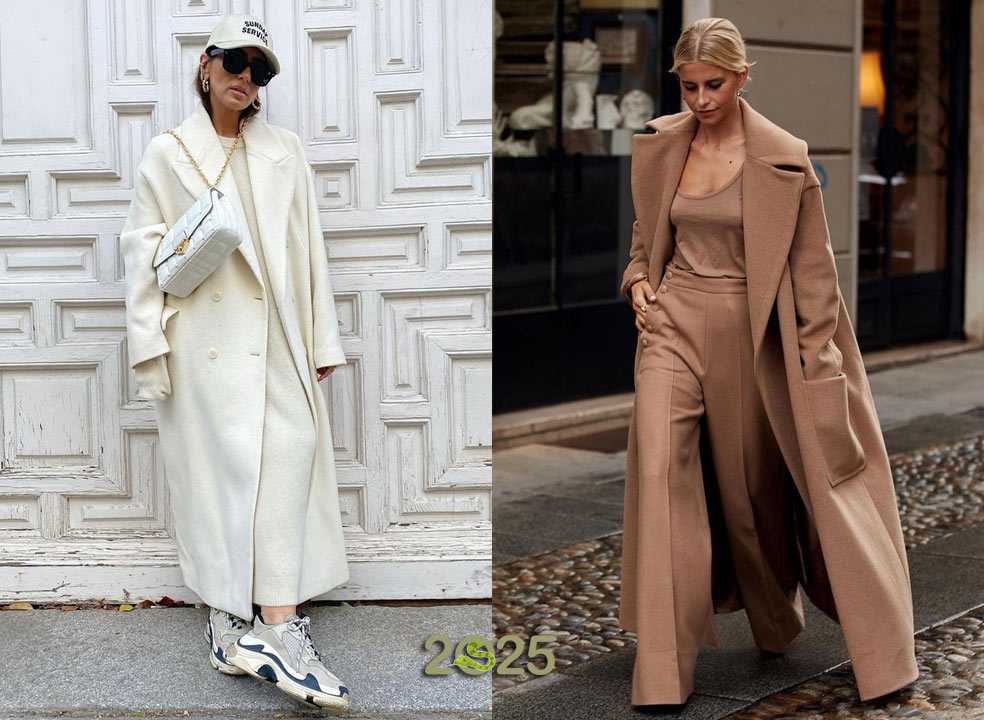 Яркий тренд на осень и зиму – тотал-лук в светлых тонах. Насколько эффектно может выглядеть такое решение в белом цвете и оттенке капучино, смотрите на фото.