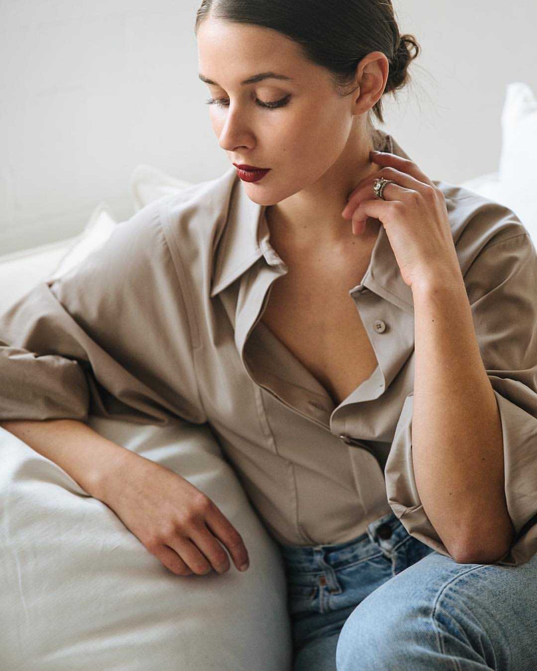Яркий макияж в паре с нейтральными базовыми предметами — это тоже один из способов добавить образу законченность, и этот способ не требует серьезных финансовых и временных затрат. Нужно просто подобрать свой оттенок помады, научиться ее правильно наносить и не забывать про макияж когда вы выходите из дома в простой футболке или базовой рубашке. Photo: harperandharley.com