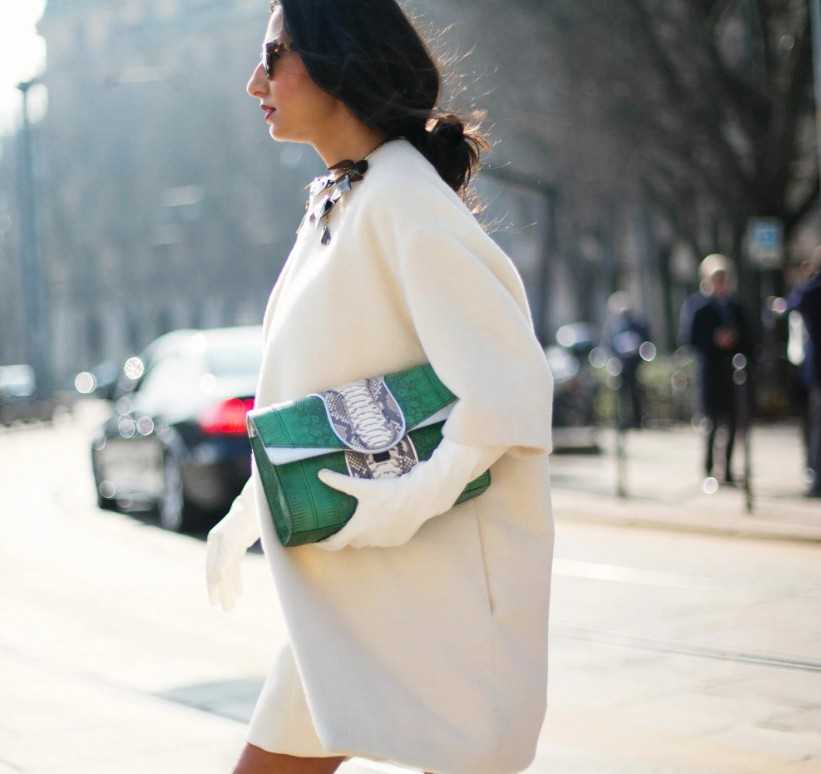 - Сумки и обувь следует подбирать насыщенных цветов. Подойдет объемная бижутерия.