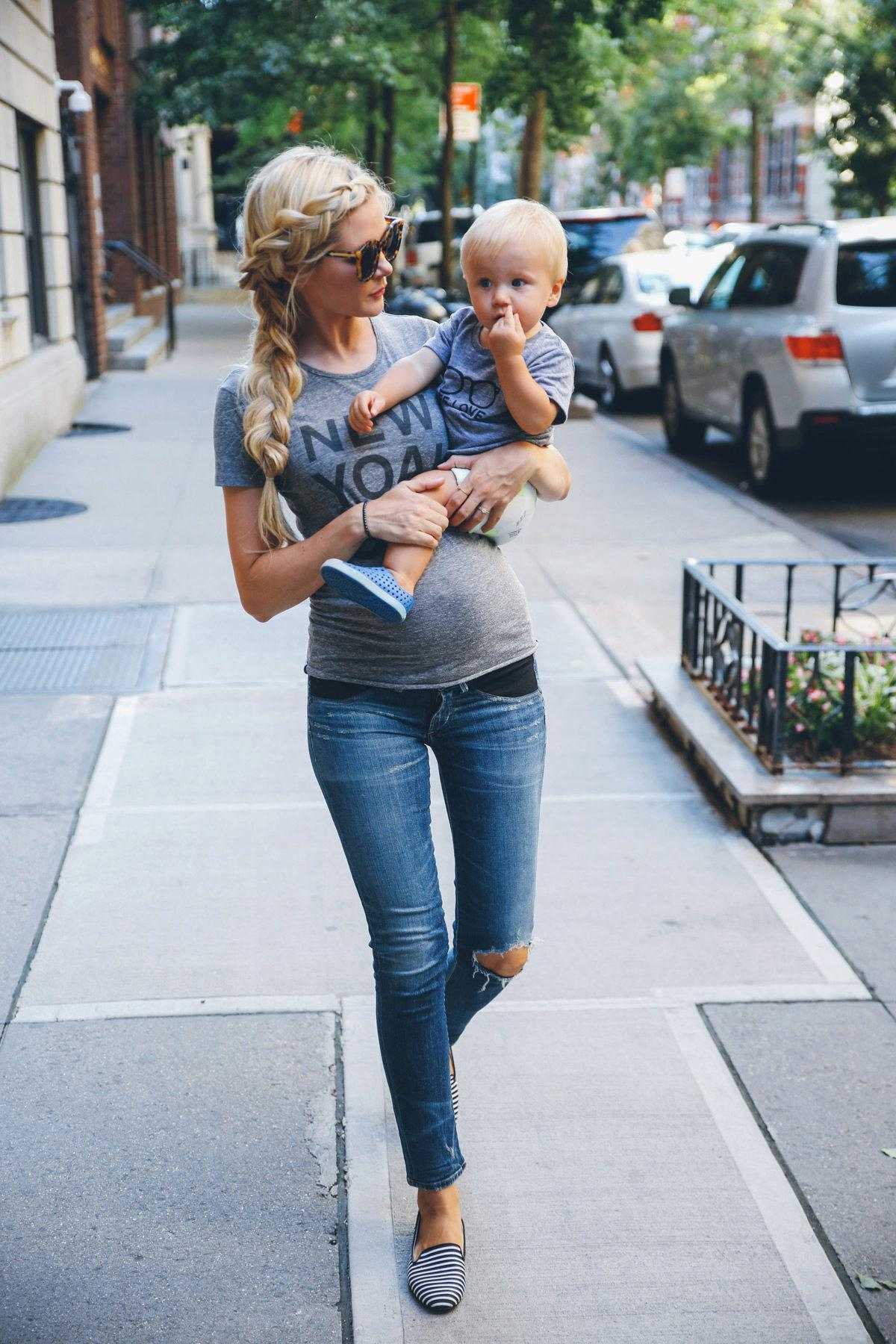 Повседневный гардероб будущей мамы состоит из удобных свободных джинсов, комфортной обуви на низком каблуке либо без него, толстовок, свитшотов, стильных блуз с различным декором. Остановимся подробнее на каждом элементе образа.