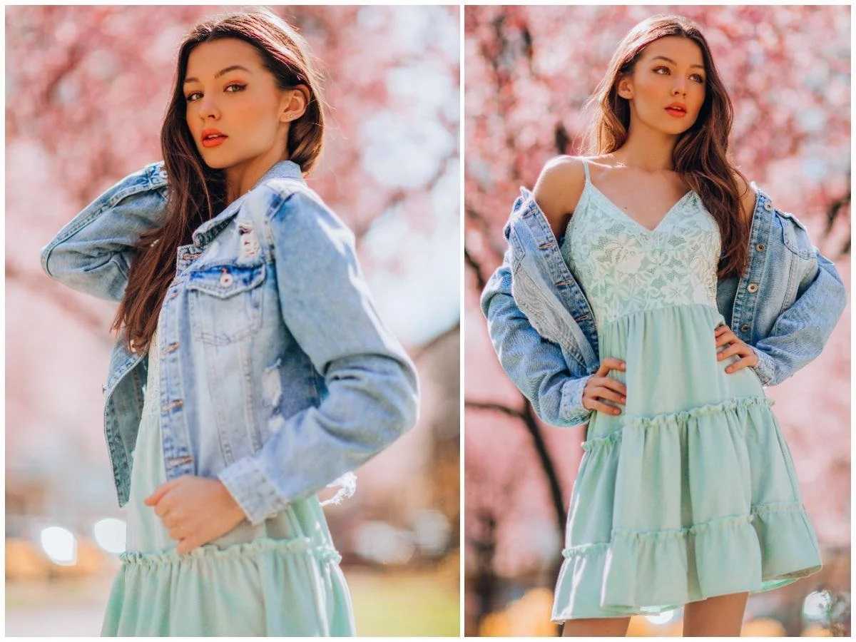 Джинсовая куртка и платье – один из самых классических комплектов для женщин любого возраста. Это идеальный стиль для долгих летних вечеров, встреч с друзьями или свидания. Комплект получается очень женственным, но в тоже время вневременным и универсальным благодаря расслабленному стилю джинсовки.