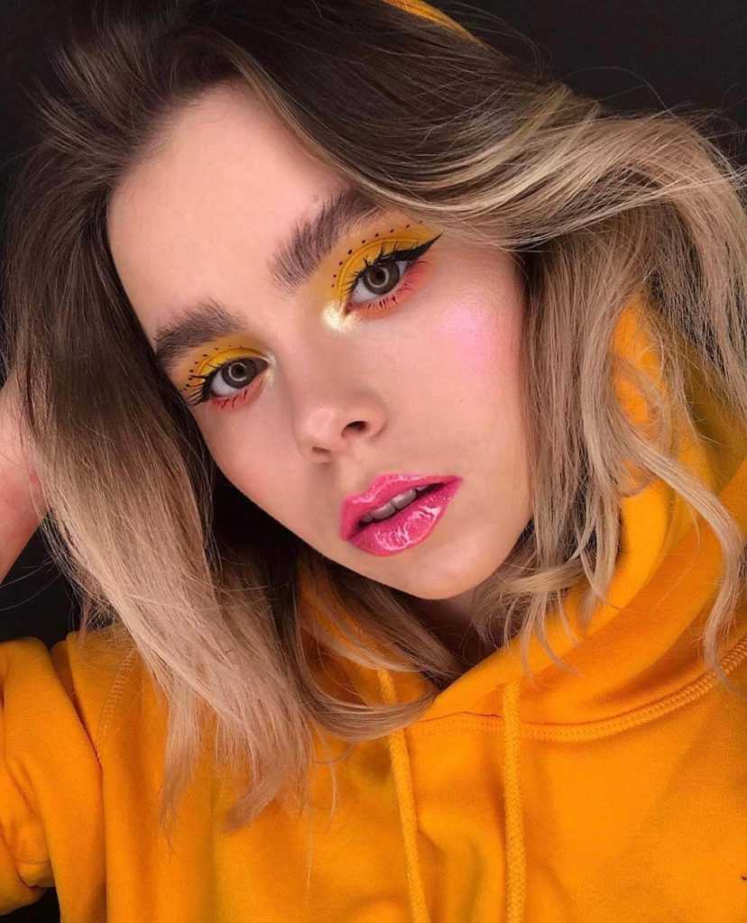 Под жёлтый подтон кожи и карие глаза подойдут тёплые цвета: золото, медь и беж. Их нужно наносить на всё подвижное веко, а оттенить складку и уголок помогут тёмно-коричневые оттенки. Для нейтрального цвета лица в макияже можно использовать продукты любых цветов. Их выбор будет зависеть от общего стиля одежды. Также стоит ориентироваться на оттенок карих глаз.