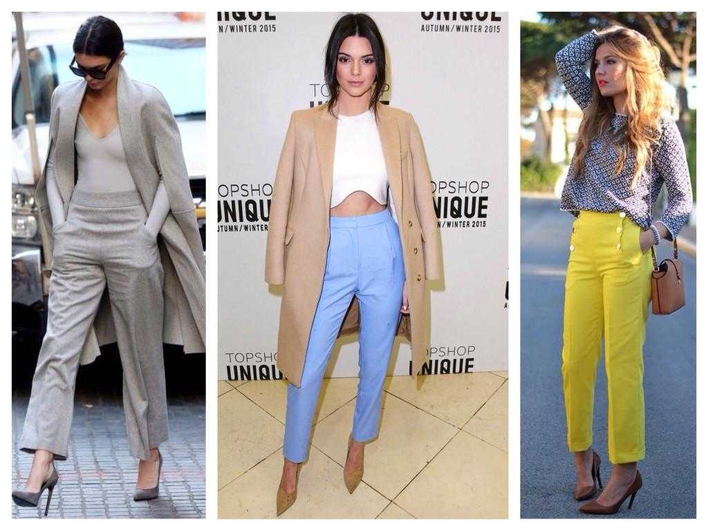 Штаны с высокой талией – ультрамодная вещь, которую желает иметь в своем гардеробе каждая модница. Пояс имеет корсетный крой, показывающий тонкую талию. Посадка подчеркивает линию бедер, визуально удлиняет короткие ноги. Такие вещи можно встретить в гардеробе не каждой модницы – особенности посадки подходят исключительно стройным людям, удачно смотрится на обладательницах фигуры «песочные часы». Сегодня встречаются варианты с зауженным, расклешенным кроем штанин.