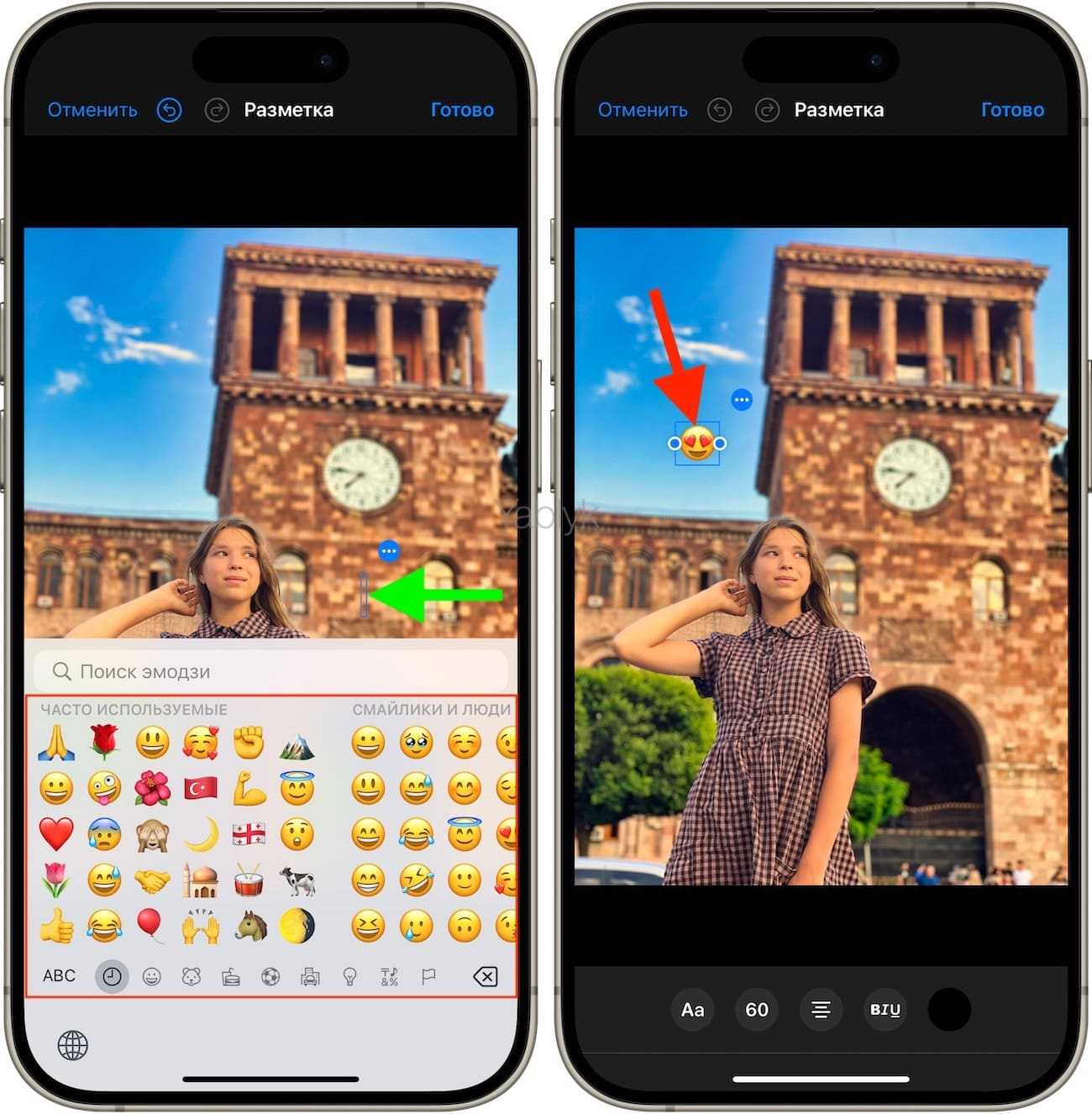 Смайлики на фото в macOS можно легко добавить, например, при помощи приложений «Фото» или «Просмотр». Для этого необходимо воспользоваться инструментом «Разметка». Ниже приведем пример с приложением «Фото».