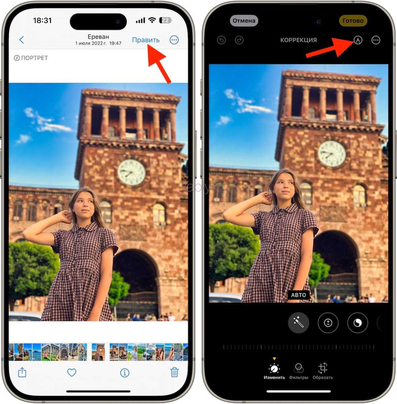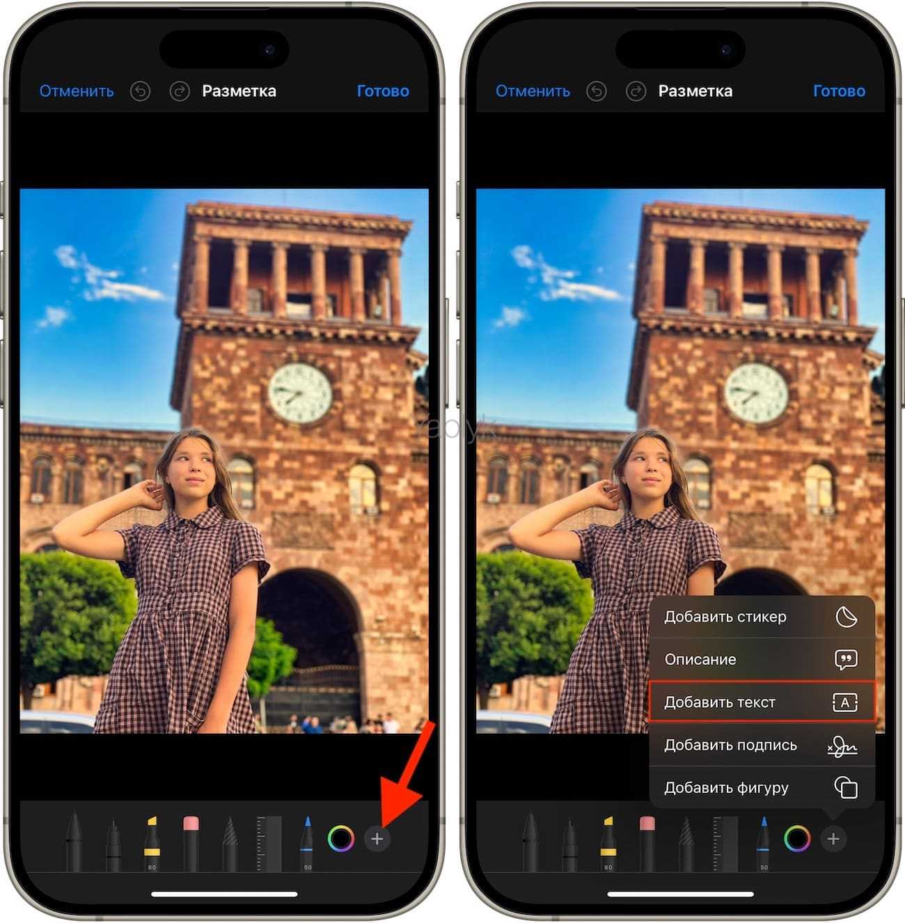 Примечание. Вы также можете получить доступ к описанным выше инструментам разметки из приложения «Сообщения». Начните с добавления фотографии в поле ввода сообщения. После этого коснитесь снимка и нажмите «Разметка».