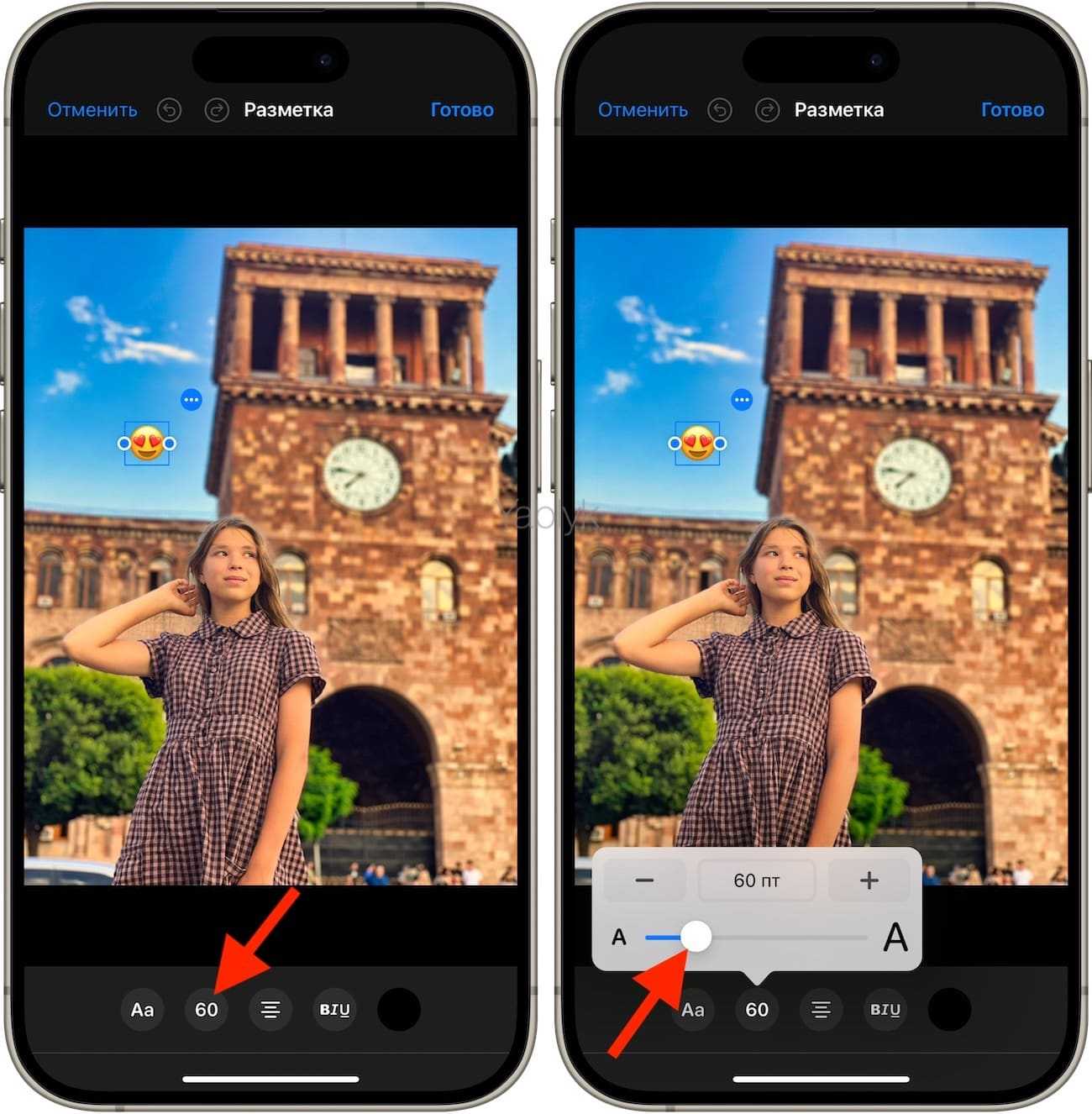 4. Щелкните по инструменту Aa → № пт, чтобы настроить размер эмодзи. После этого перетащите его в любое место на изображении.