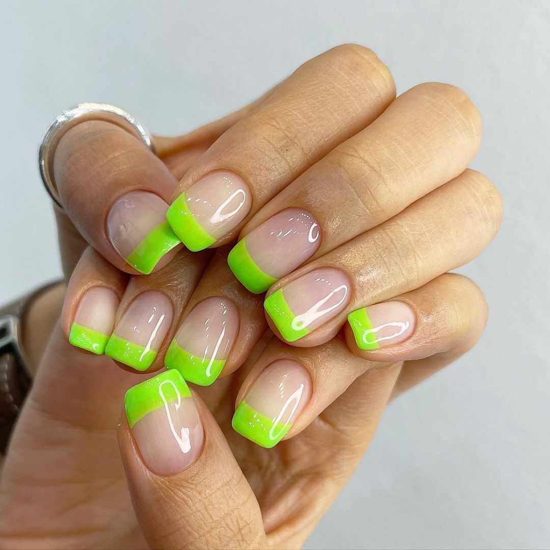 Сочетание насыщенного зелёного с ярко-жёлтым цветом выдаёт совершенно умопомрачительный оттенок. Современный яркий дизайн ногтей выбирают творческие люди.