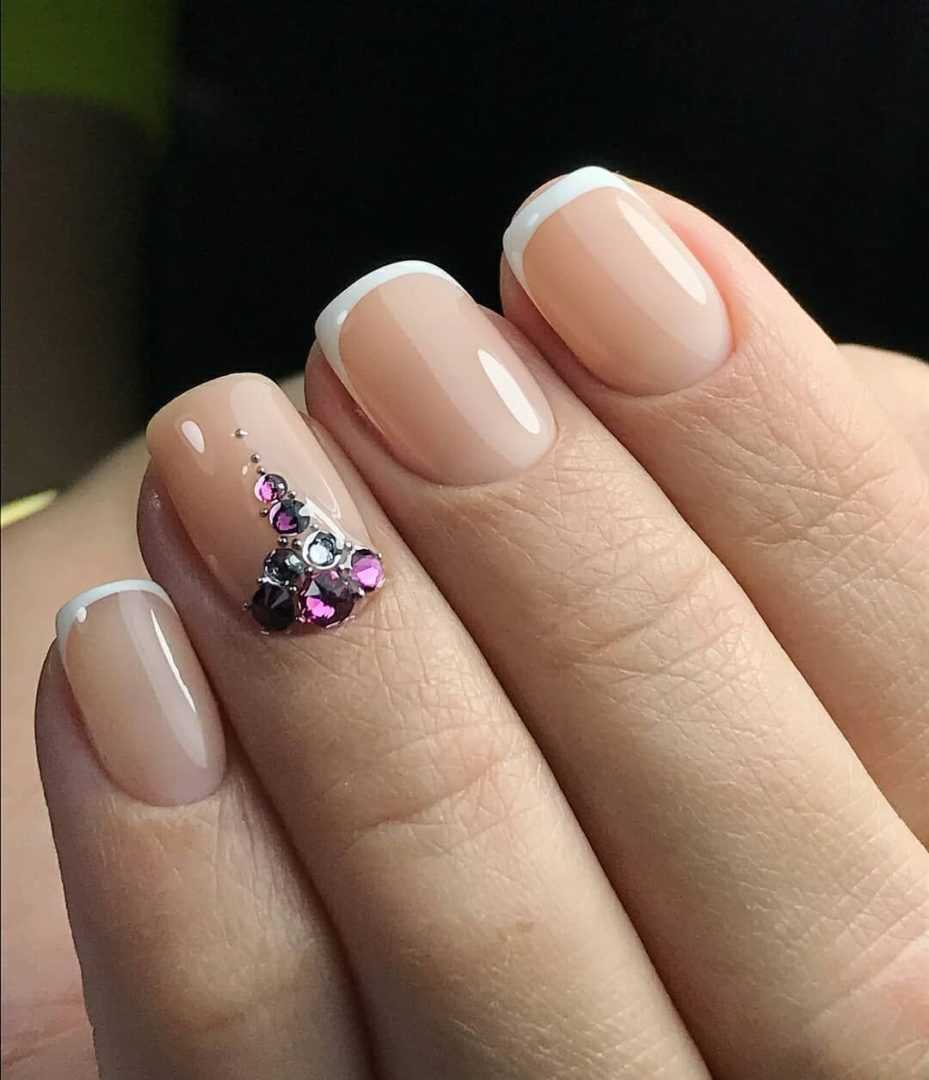 Короткие ногти — универсальный вариант, который подойдет любой девушке. Френч на такой длине смотрится превосходно. С этим дизайном вы можете смело отправляться на работу, в кино и даже в спортзал. Добавьте осенью немного декора, чтобы сделать свой французский маникюр ярче. Так ваши ручки будут смотреться гораздо привлекательнее.