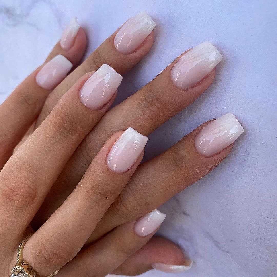 Французский маникюр омбре предполагает градиентное окрашивание одним или несколькими оттенками лака. Такой принт выглядит слегка размытым, его лучше всего сочетать с наращиванием ногтей. Если интересует стильный френч на острые ногти 2024, то омбре в модном оттенке точно подойдет.