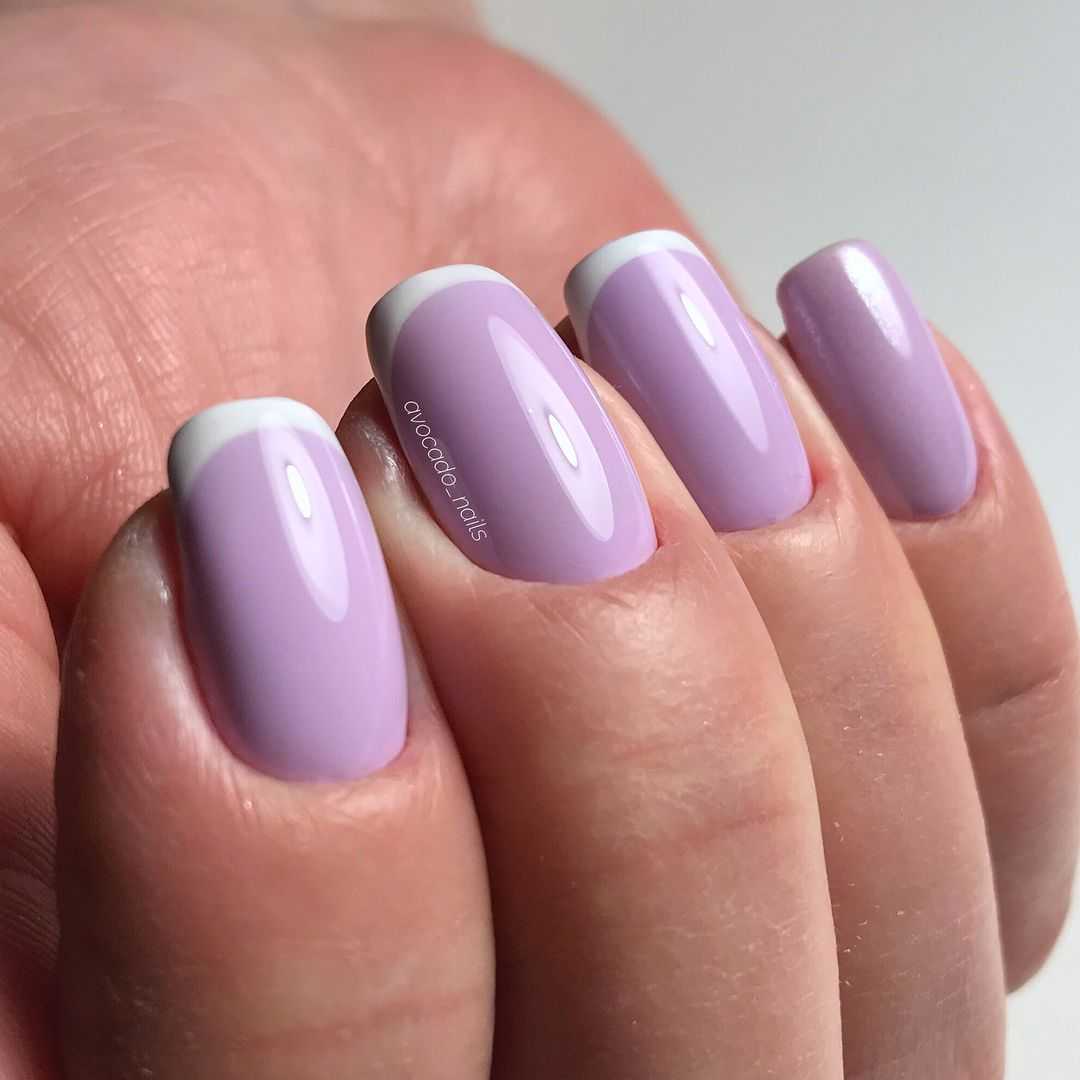 Традиционный дизайн. Он известен еще с 90-х годов. Весна 2024 года не обойдется без такого маникюра. Актуально будет покрасить линию «улыбки» в сиреневый цвет и добавить черные точки.