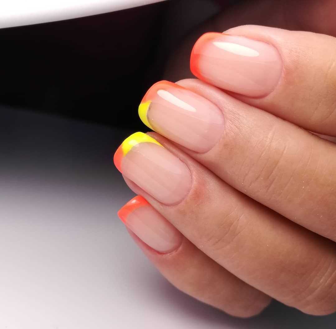Вариант цветного френча, при котором каждый ноготь окрашивается в отдельный яркий цвет. Самый классный нейл-дизайн для лета уже оценили многие модницы в соц. сетях, так как он отлично сочетается с яркими летними коктейлями, купальниками и общей атмосферой релакса.