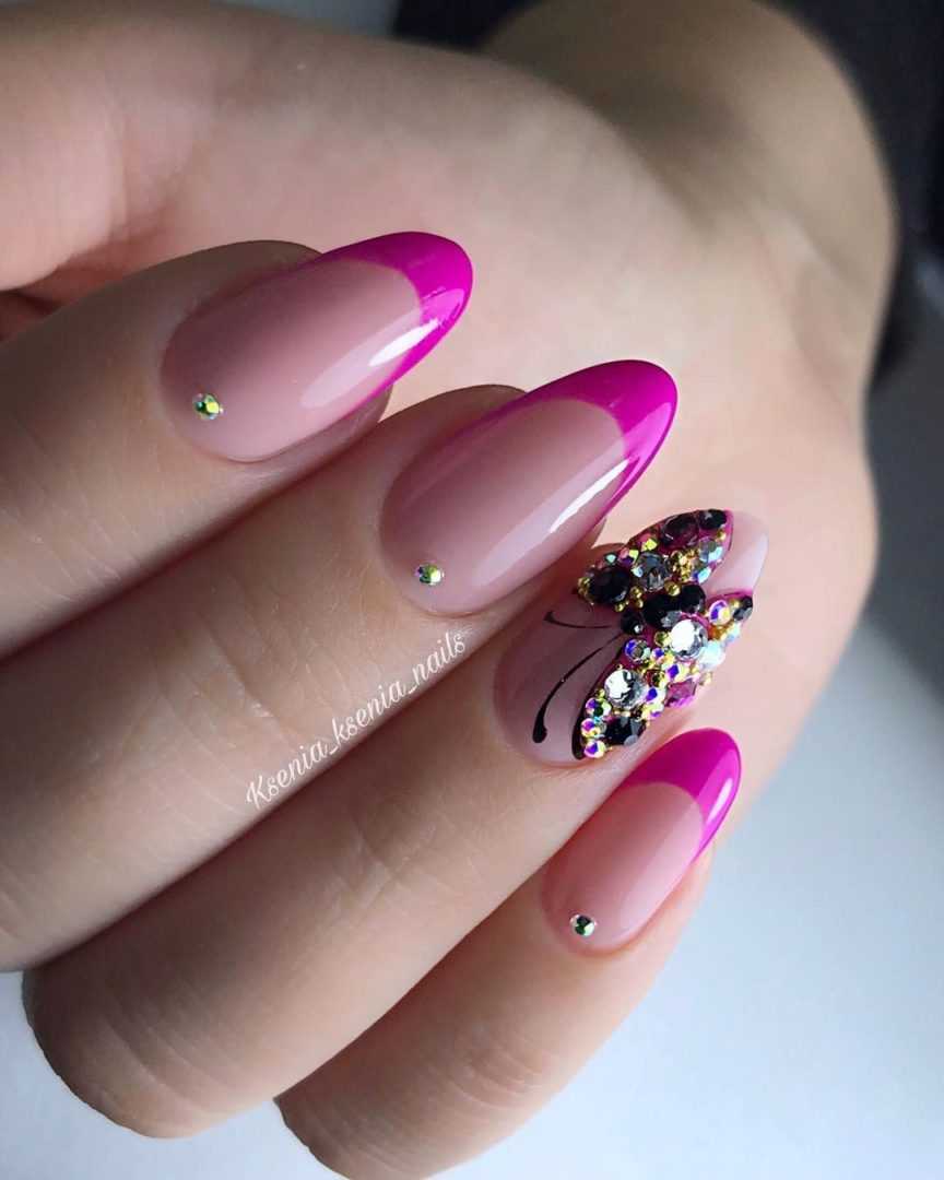 Розовый — вариант для тех, кто не хочет делать белый френч, но еще не готов сделать слишком яркие или черный. Это выбор нежных и романтичных натур. Хотя розовый френч может быть не просто пастельным, но очень, очень ярким. Например, в оттенке фуксия.