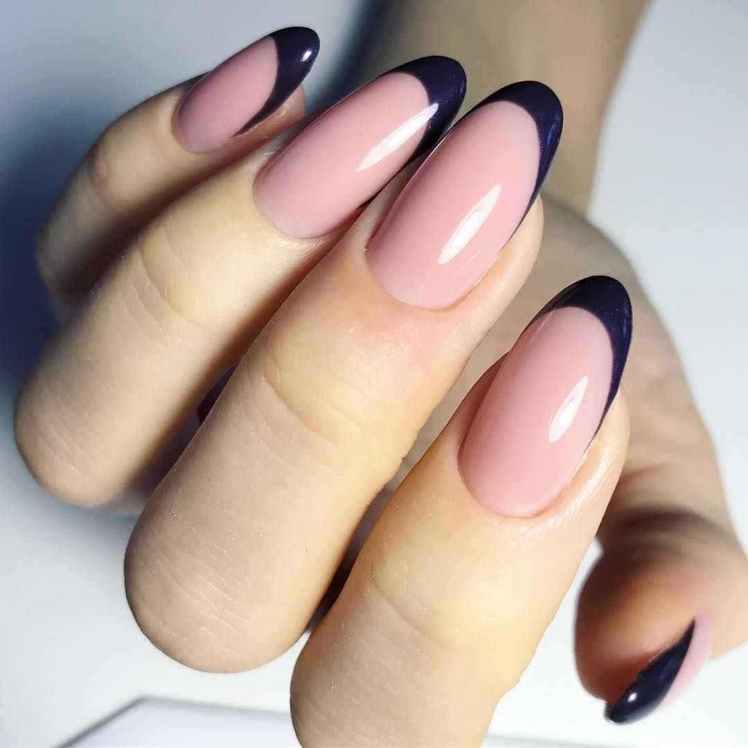Обратный френч — это вариация классического френча, где полоска на кончиках ногтей выполнена не в белом цвете, а наоборот — цвет френча на кончиках ногтей отличается от основного цвета ногтей. Можно использовать контрастные цвета, такие как черный и белый, или же играть с оттенками одного цвета для создания оригинального и стильного образа.