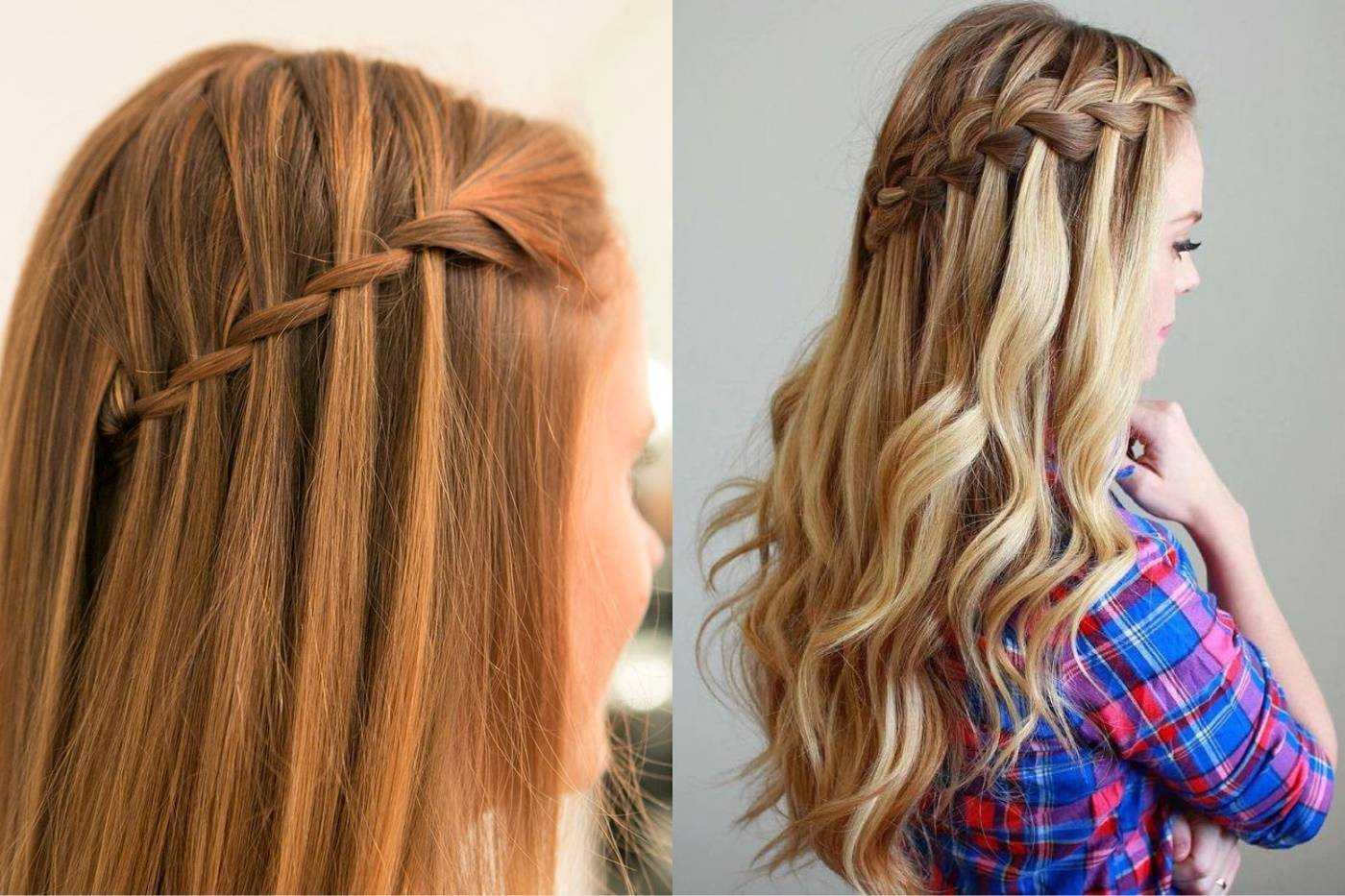 - Прямые. Коса-водопад хорошо смотрится на прямых волосах. Если же вы хотите придать распущенным кончикам игривости, подкрутите их плойкой или стайлером.