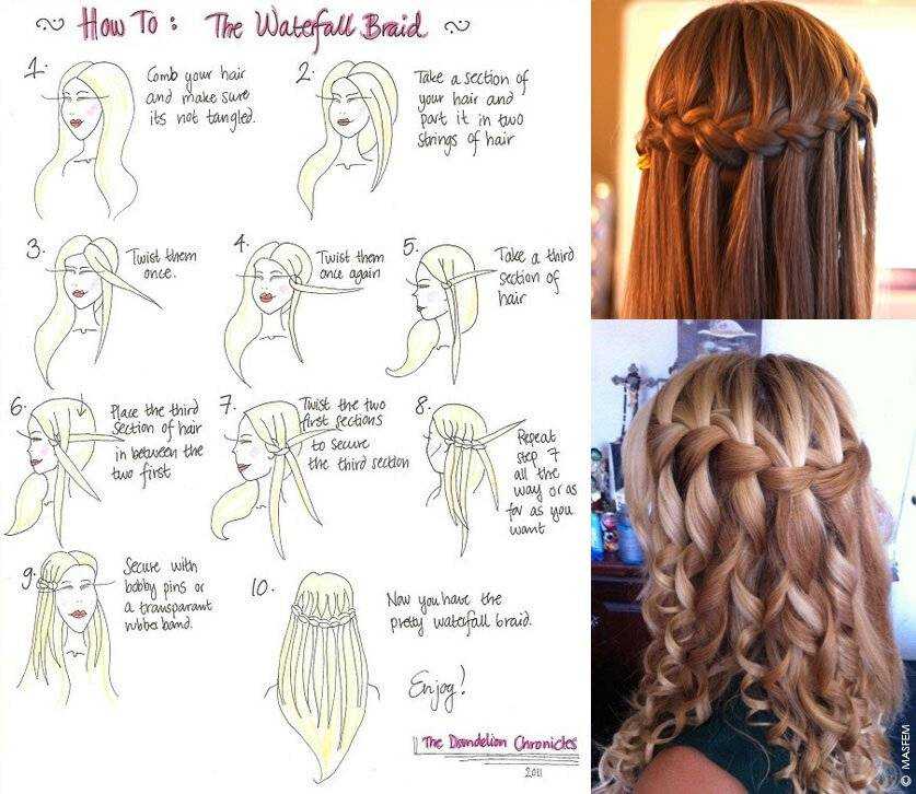 На видео- прическа водопад с кудрями пошаговая инструкция: