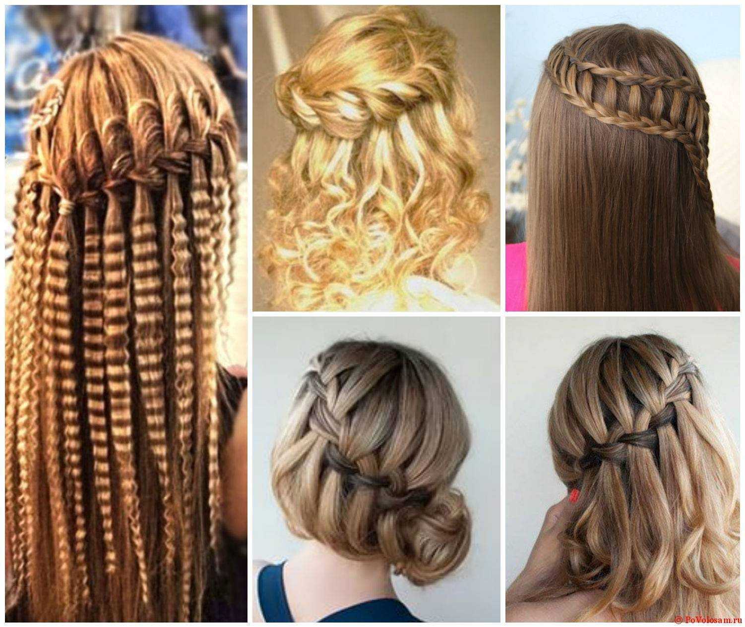 Для праздничных «Водопадов» чаще плетется объемная коса, используется начес, локоны. Волосы не обязательно оставлять распущенными. Популярно выполнение пучка. Допустимо собрать сложную конструкцию.