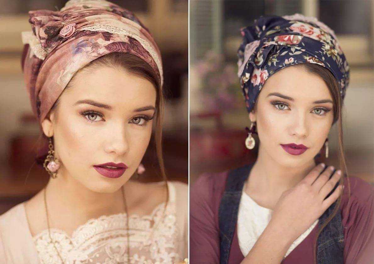 Так как завязанный на голове шарф полностью прикрывает волосы, внимание окружающих акцентируется на женском лице. Поэтому макияж должен быть аккуратным, а челка (если она есть) – идеально ровной. Если у женщины круглое лицо, не следует завязывать накидку под подбородком как обычную косынку, это визуально сделает овал еще круглее