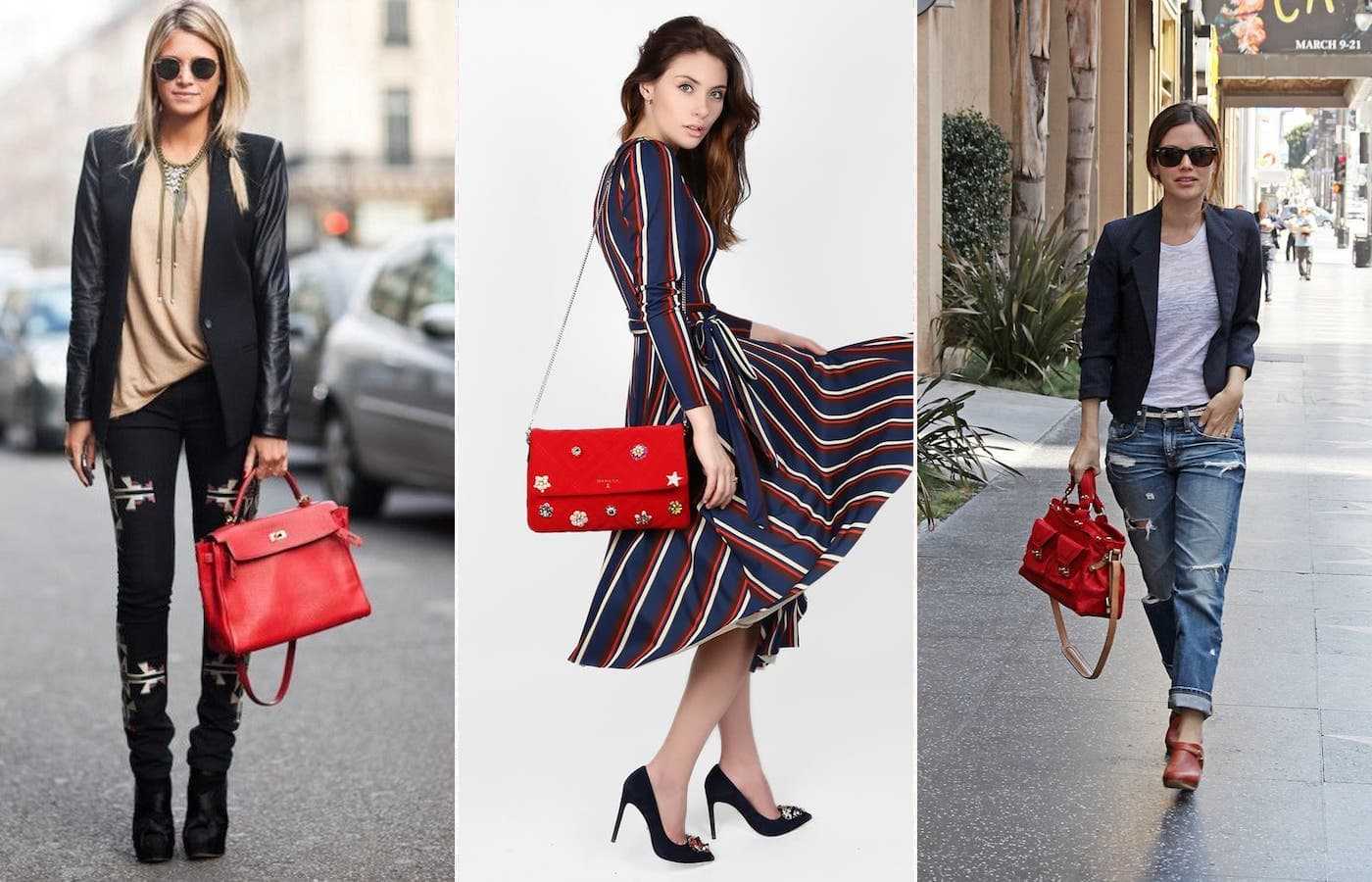 С чем носить красную сумку осенью и весной: примеры фотографий