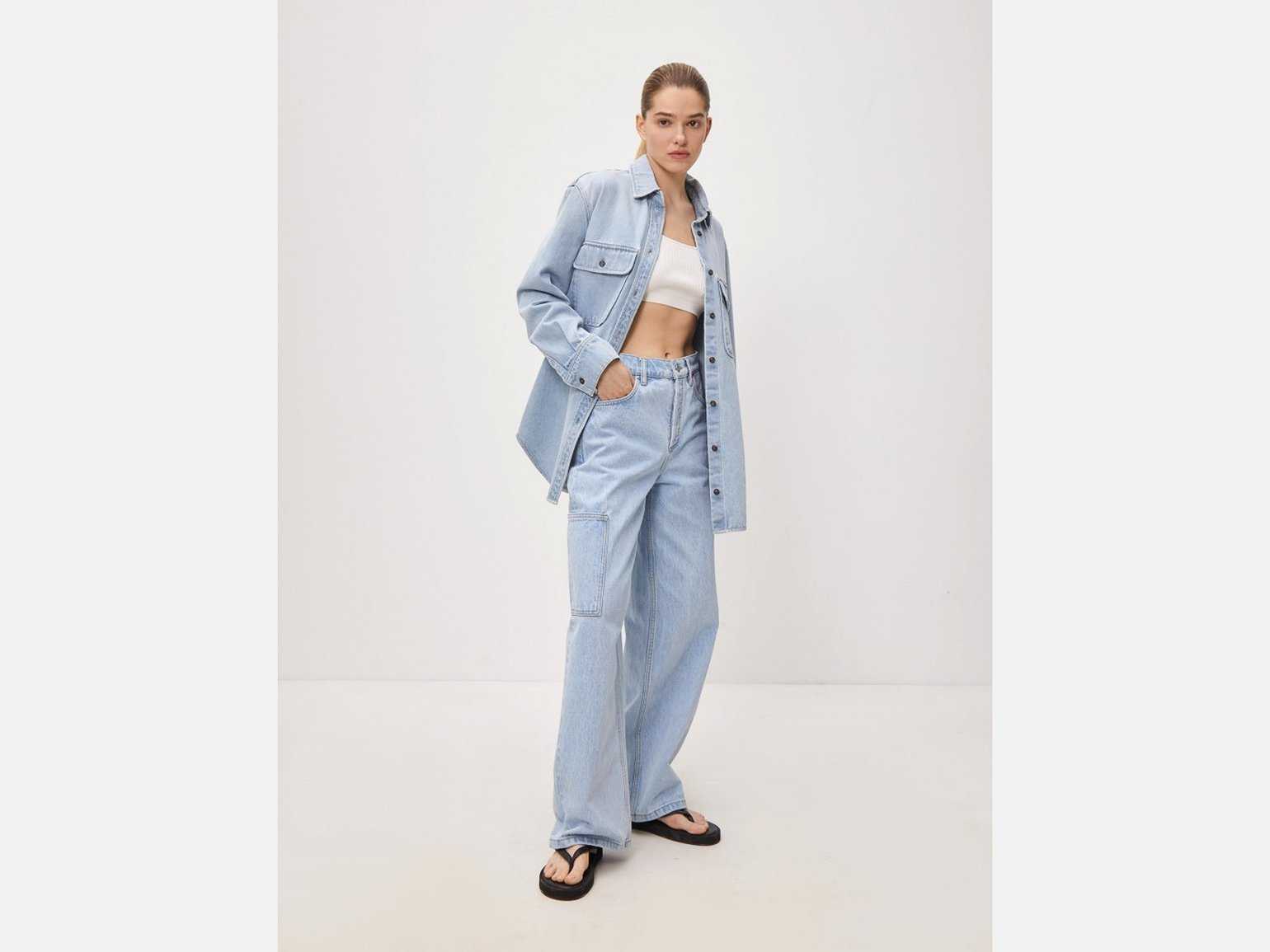 Широкие штаны с объёмными карманами впервые появились пару сезонов назад, но к 2023-му этот тренд набрал максимальную мощь и, пройдя все ступени своего становления, заполонил коллекции молодёжных массмаркет-брендов.