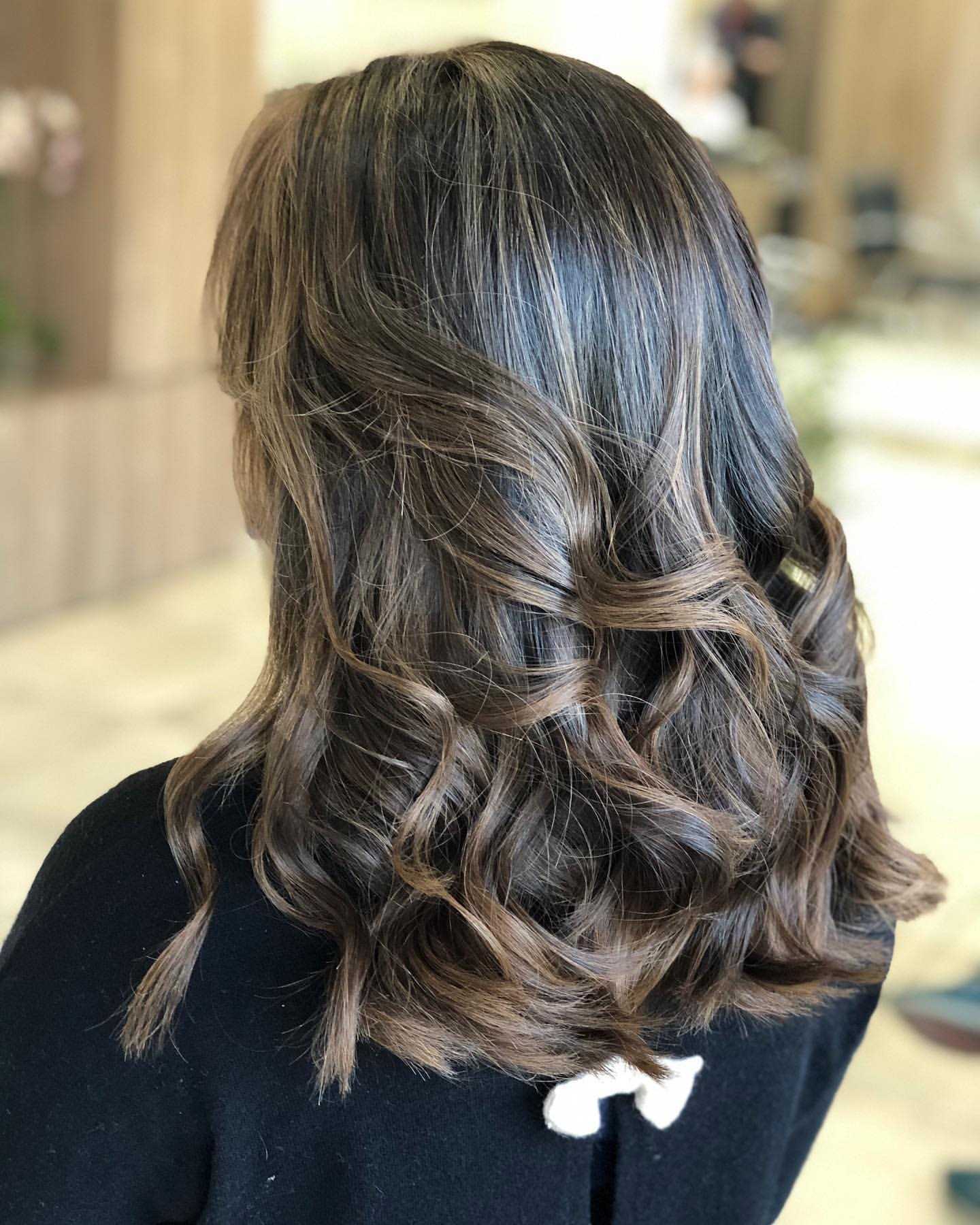 Длина миди хорошо держит кудри разных размеров и форм – крупные локоны-волны, мелкие завитки, вертикальную завивку, прикорневой объем. Хорошо смотрится комбинация начеса на затылке с легкими небрежными кудрями. Обладательницам средней длины волос идеально подходит прямая длинная челка в сочетании с волнистыми прядями.