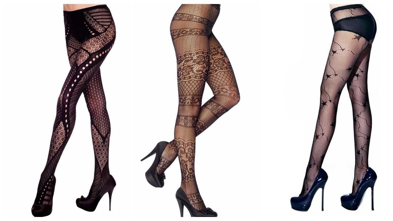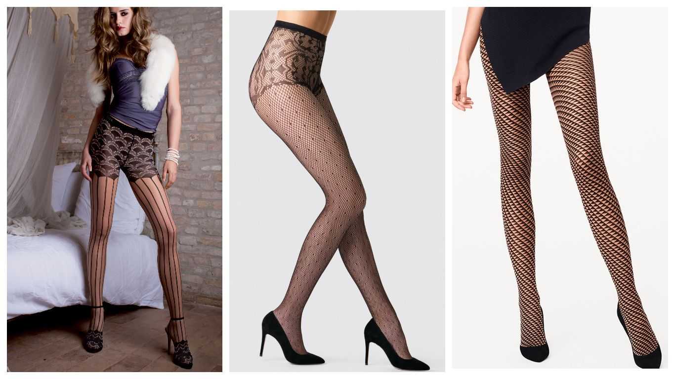 - Ажурные колготки, колготки в сеточку и колготки с принтами вышеназванных цветов