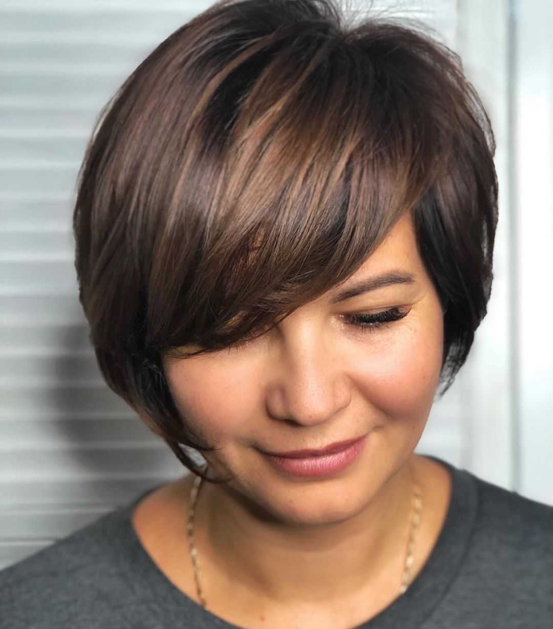 Такие варианты больше всего подходят для женщин с круглым или овальным лицом. Это позволяет освежить образ. За такой прической легко ухаживать, она не нуждается в особой укладке.