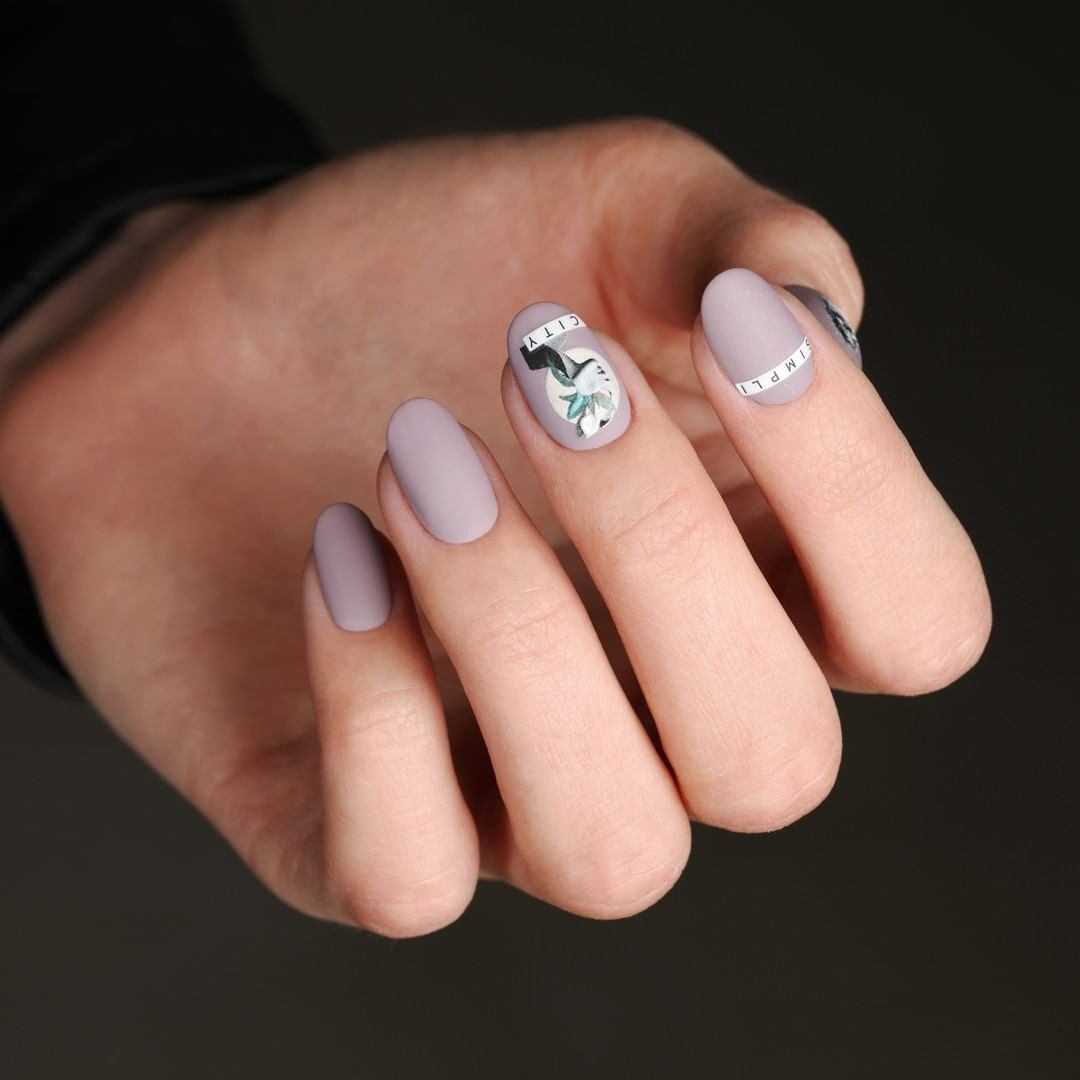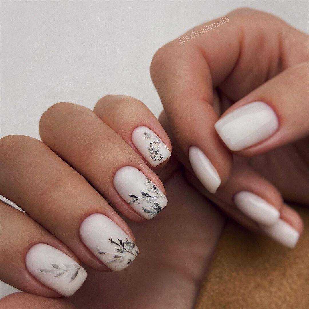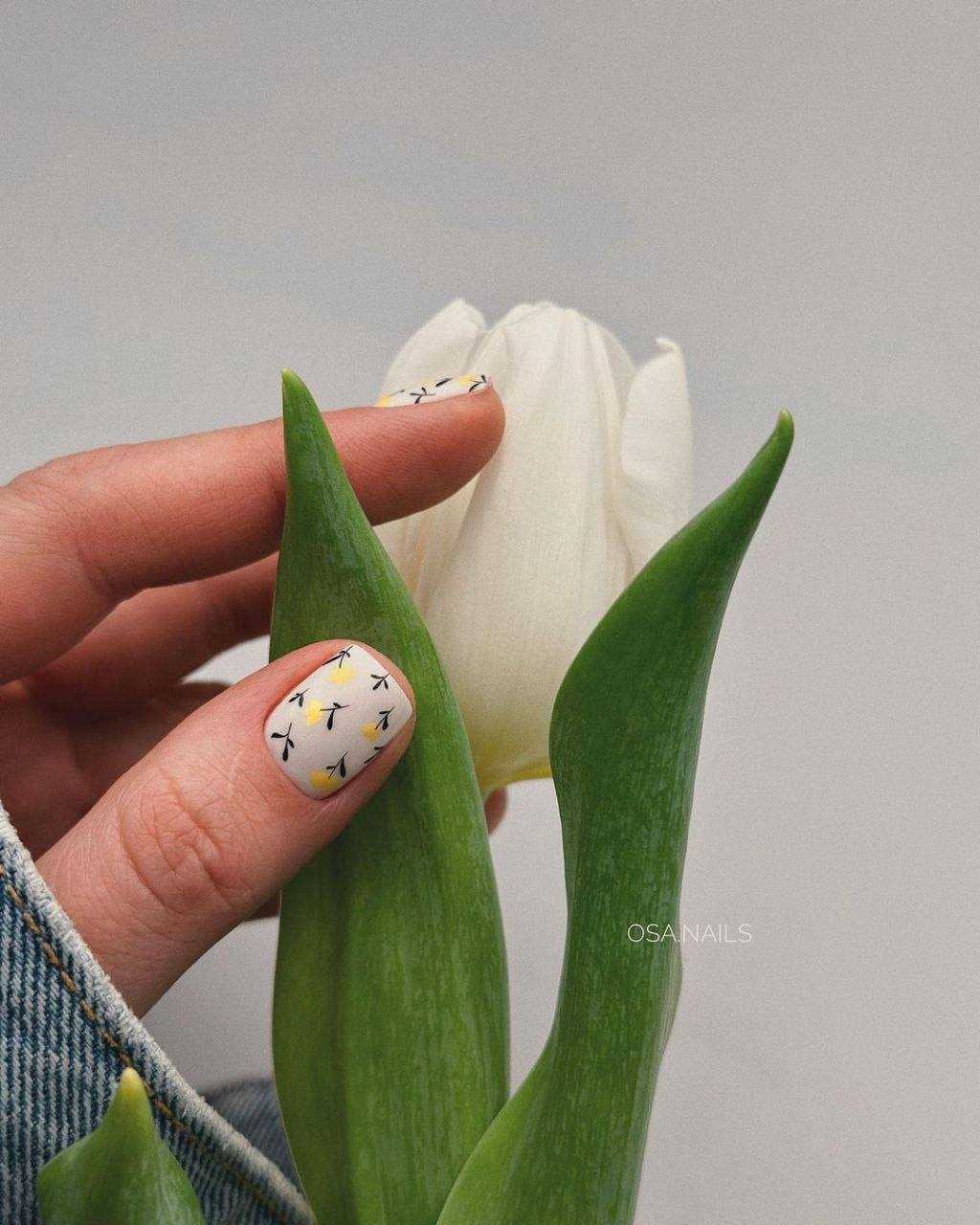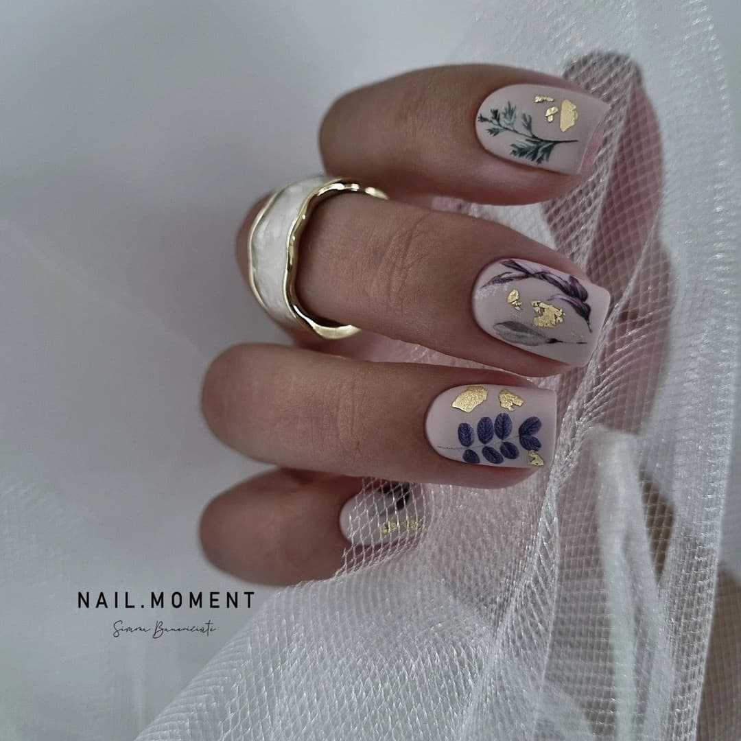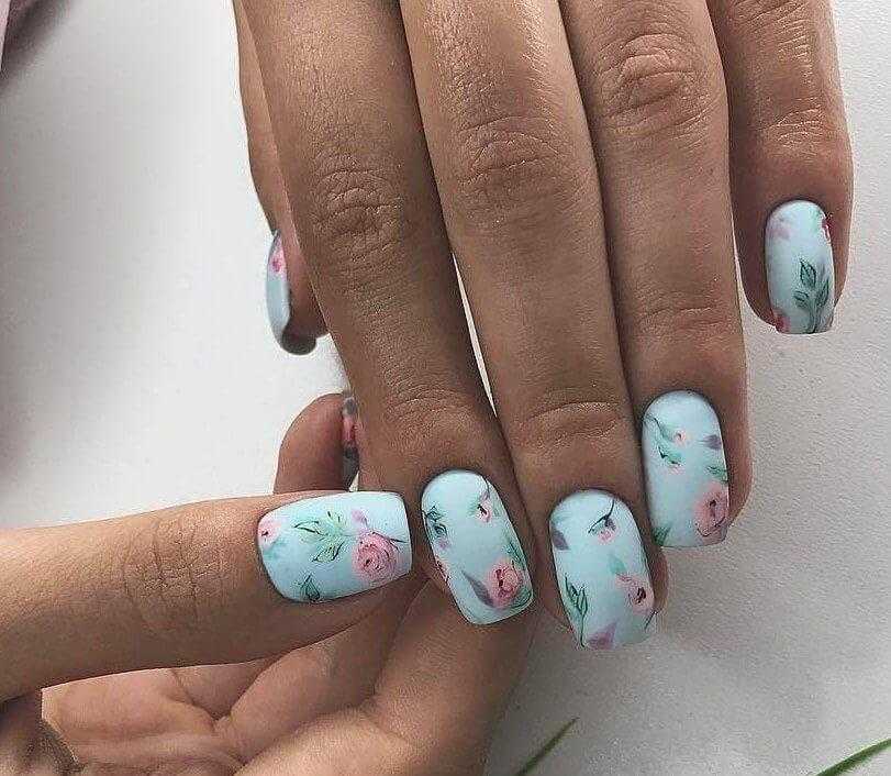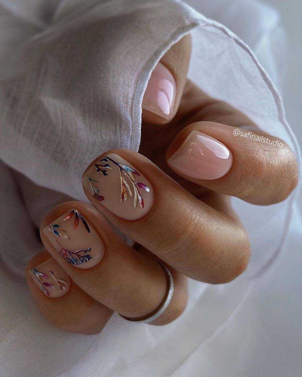 | 2. Матовый маникюр с легкими цветочными узорами. | |
