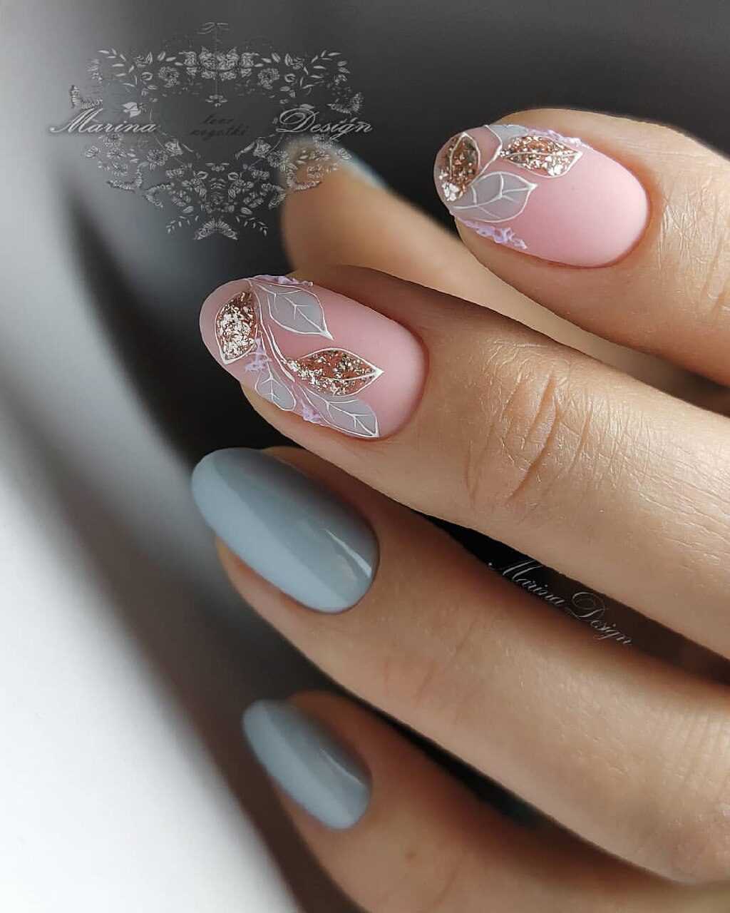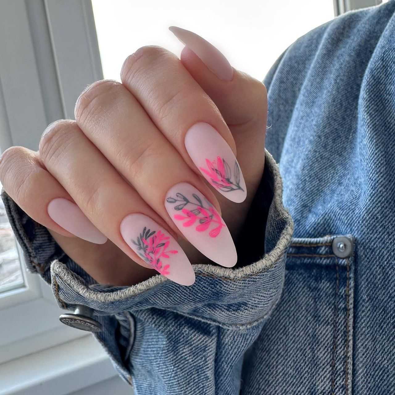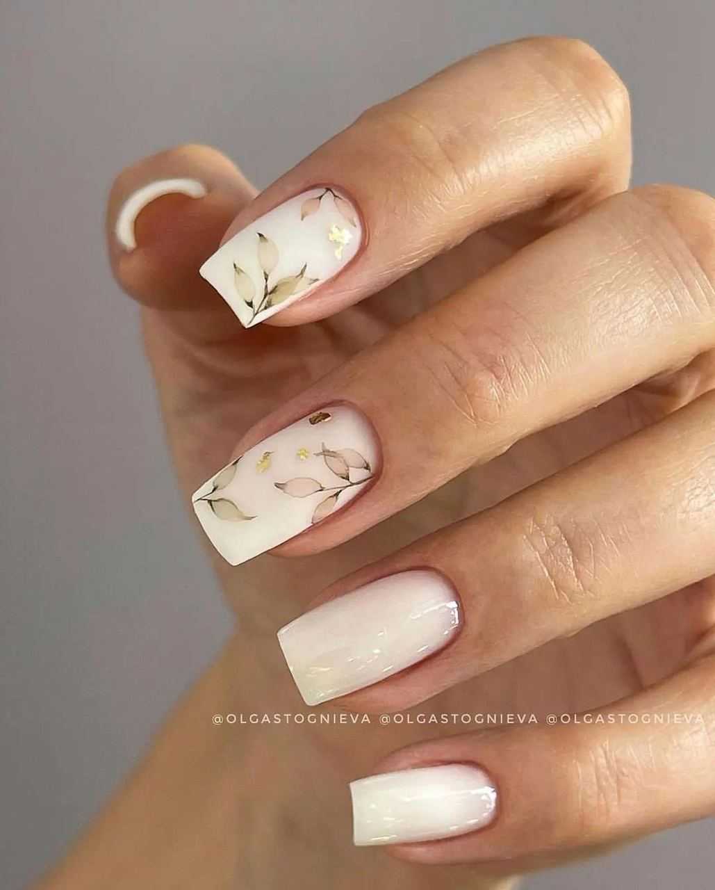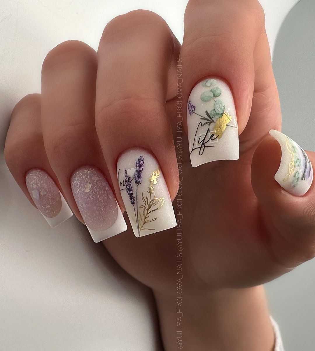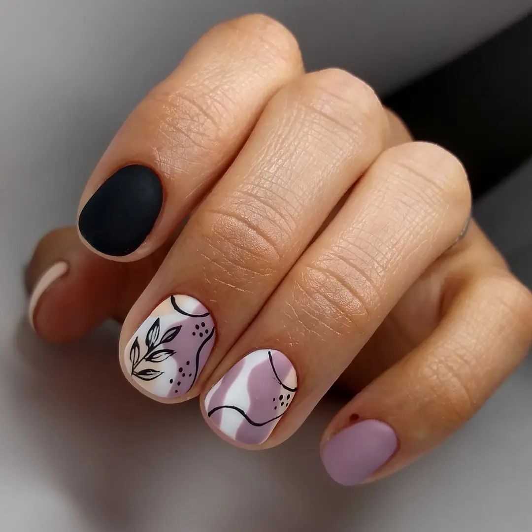 | 2. Матовый маникюр с легкими цветочными узорами. | |