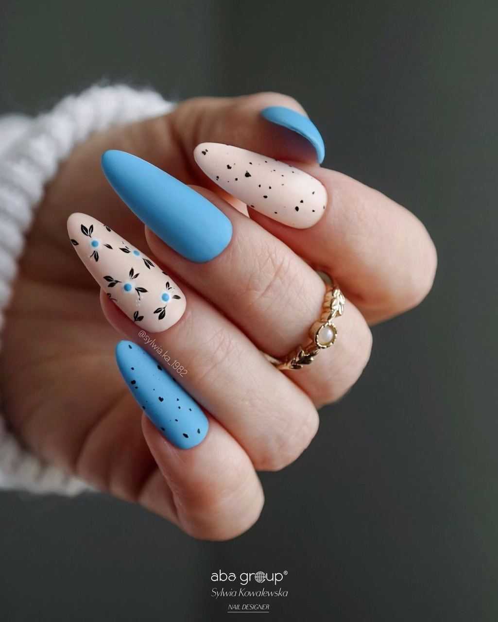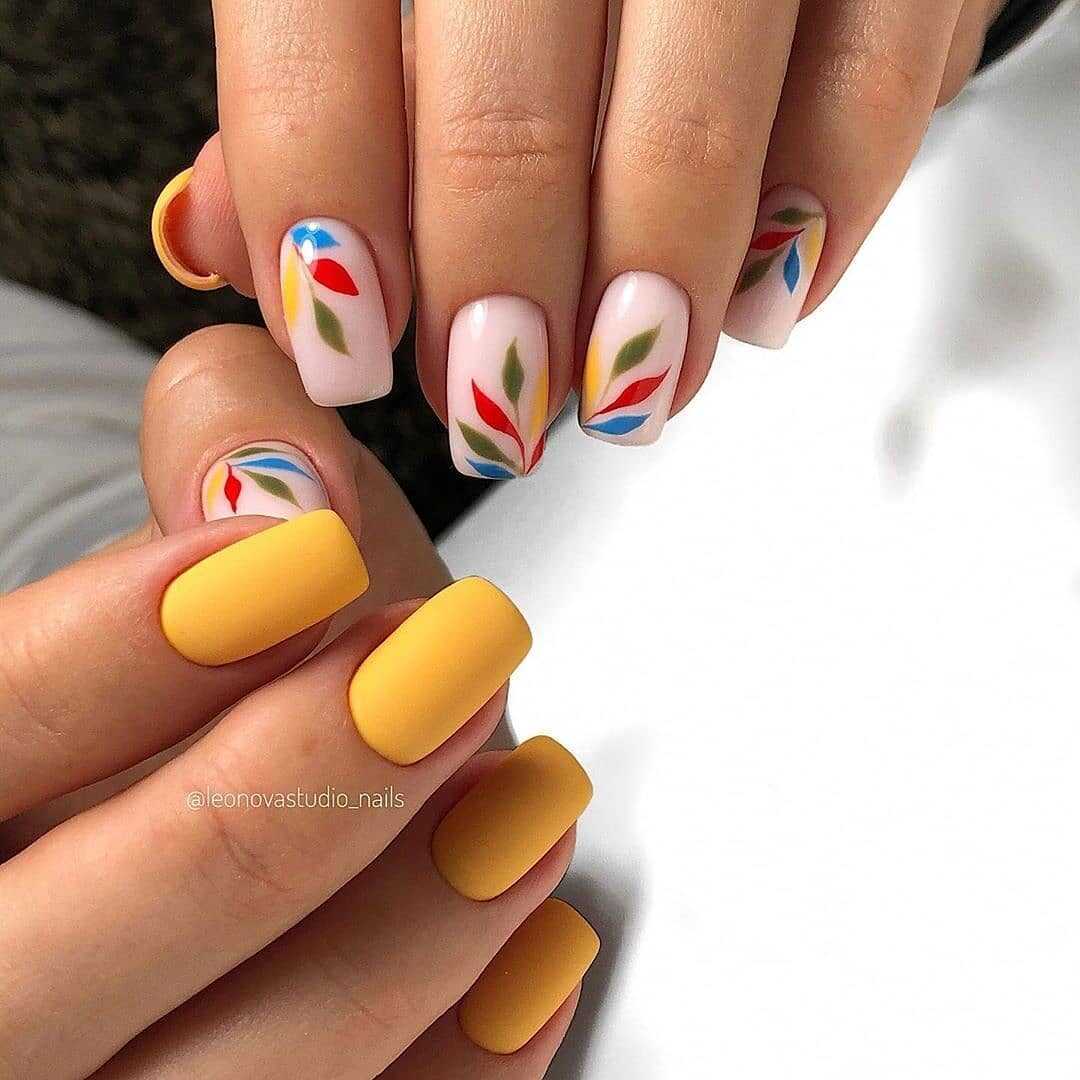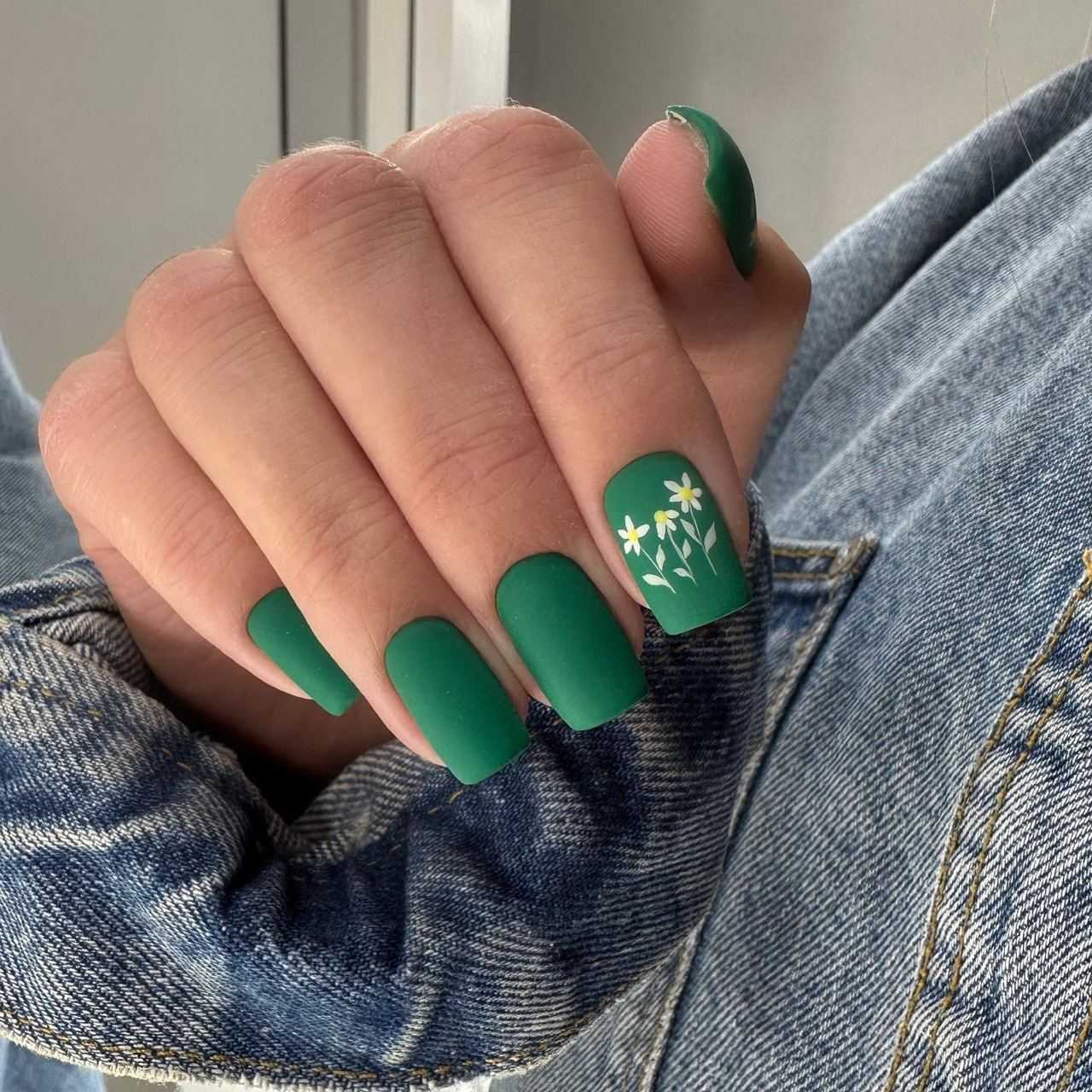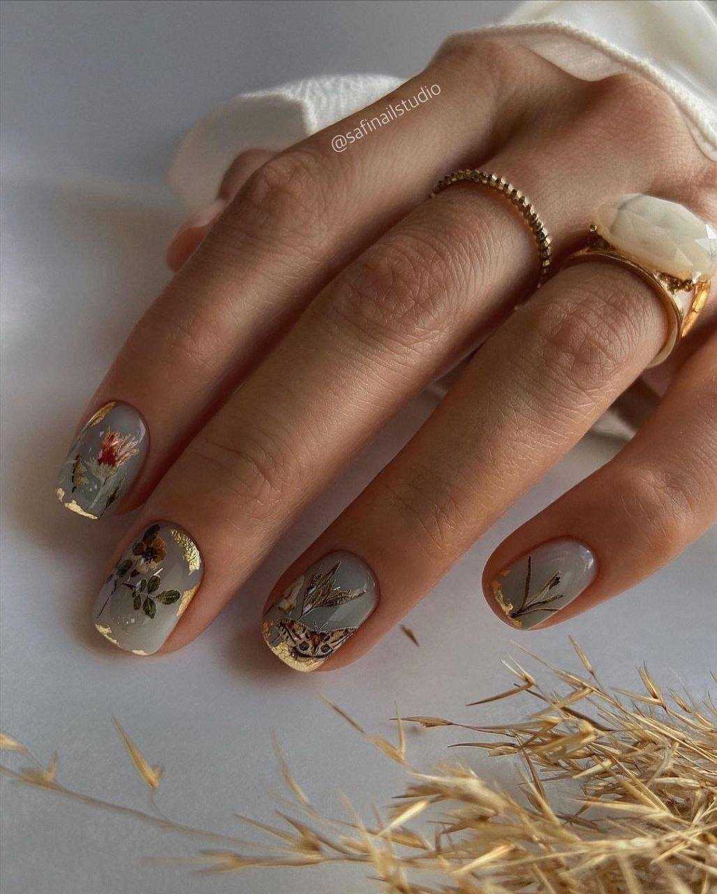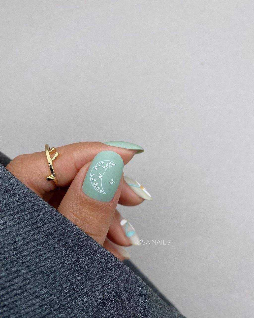 | 2. Матовый маникюр с легкими цветочными узорами. | |